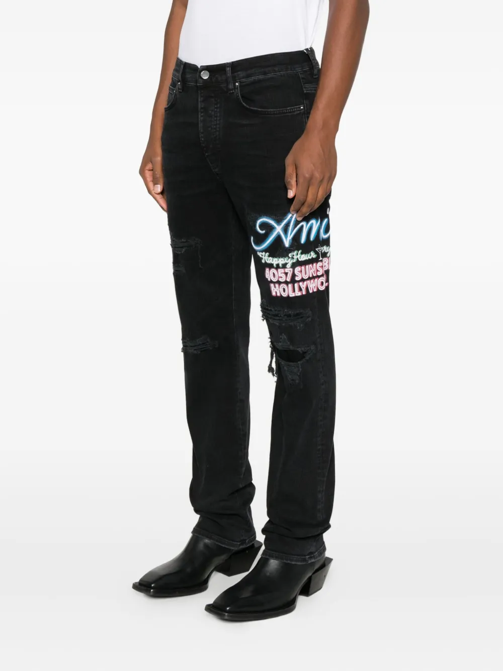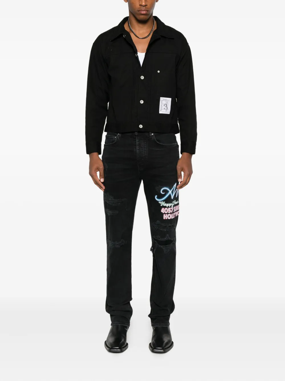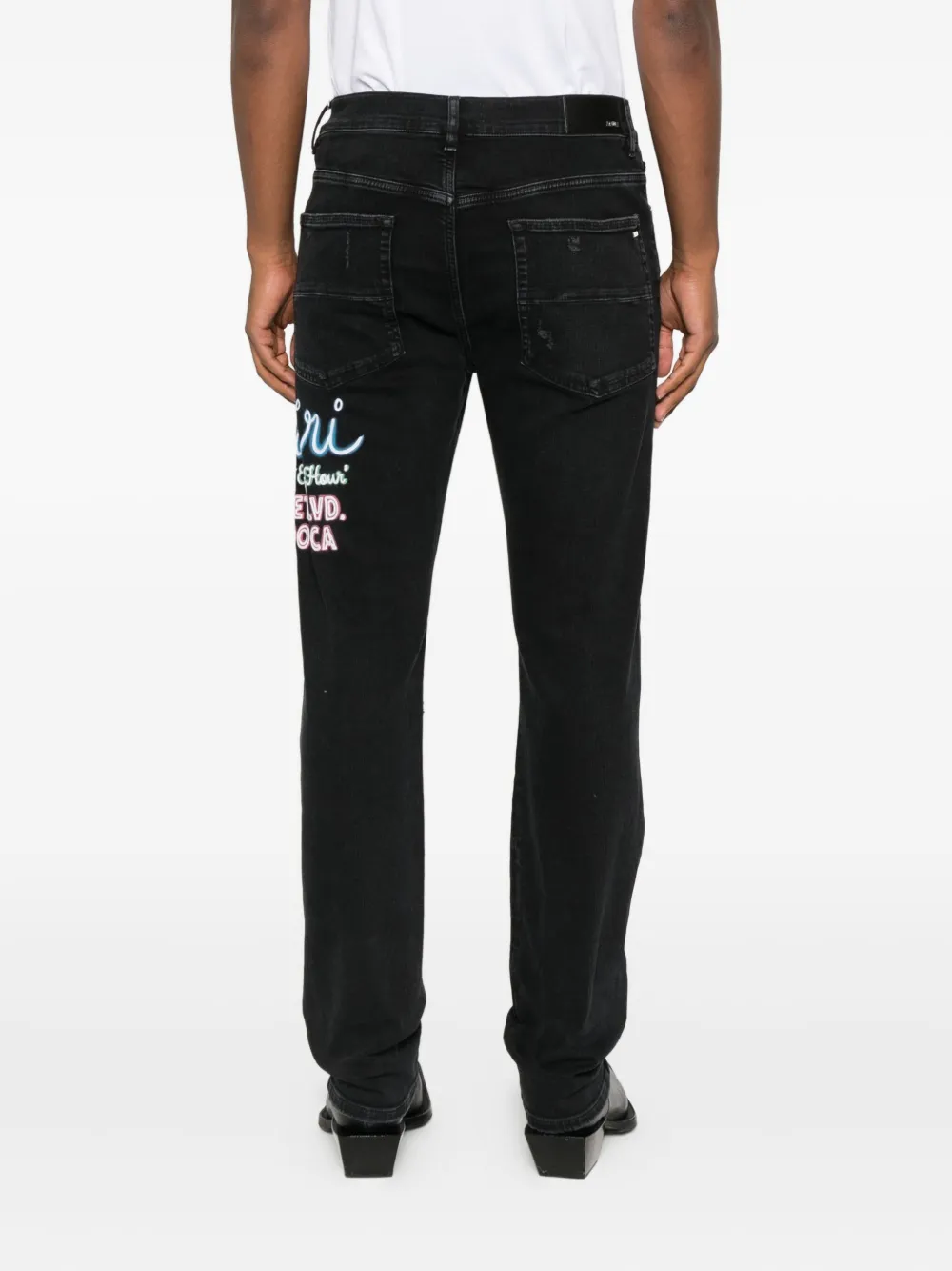 Джинсы с вышивкой и эффектом потертости AMIRI, черный