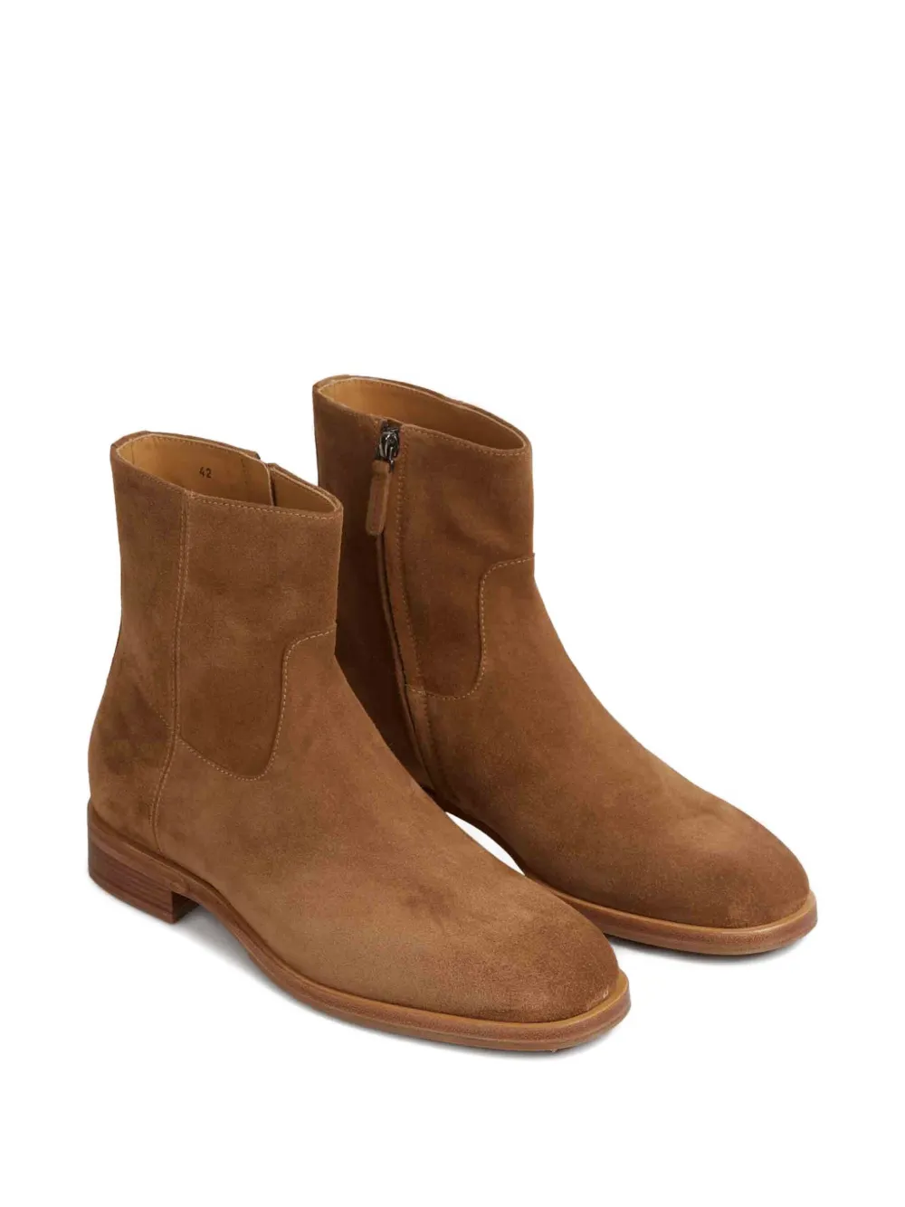 Светло-коричневыйзамшевый верхзастежка-молния сбокукруглый носокплоский каблуквысота до щиколотки