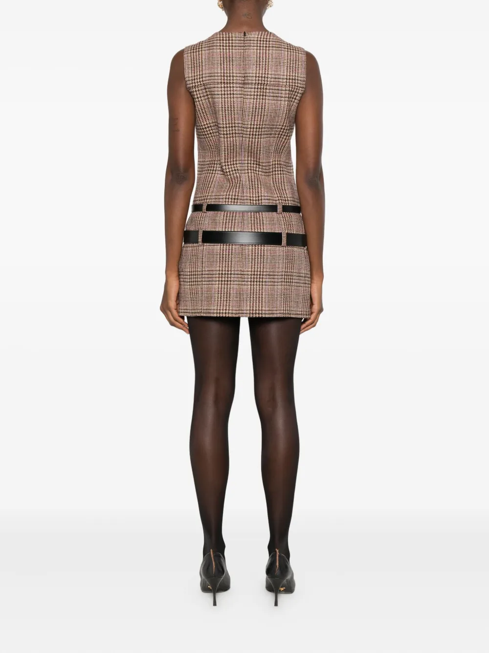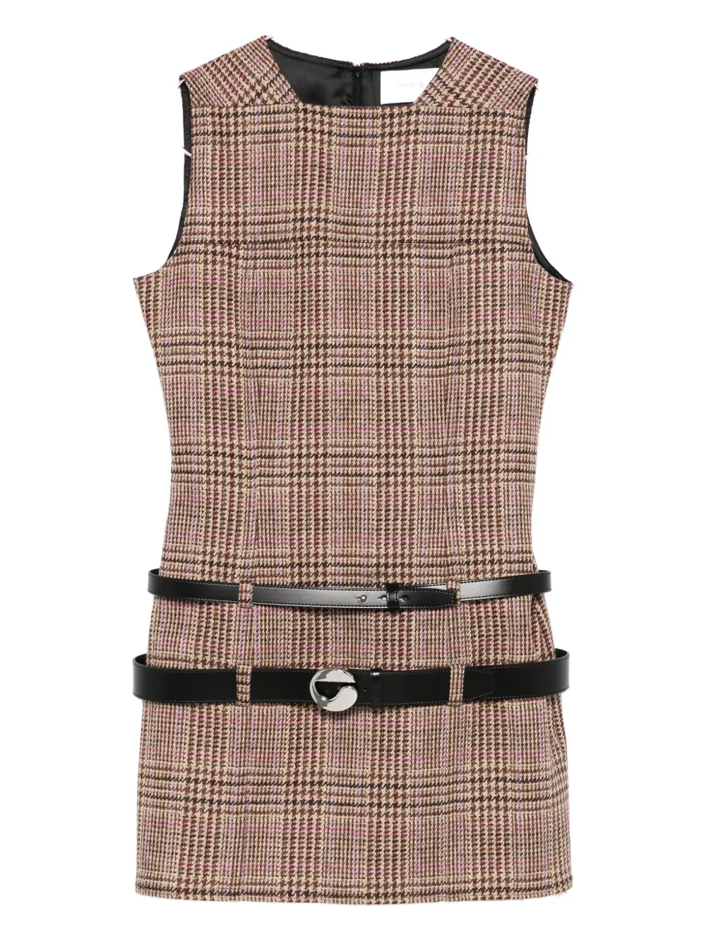 Коричневый шерсть клетчатый узор без рукавов круглый вырез застежка-молния сзади