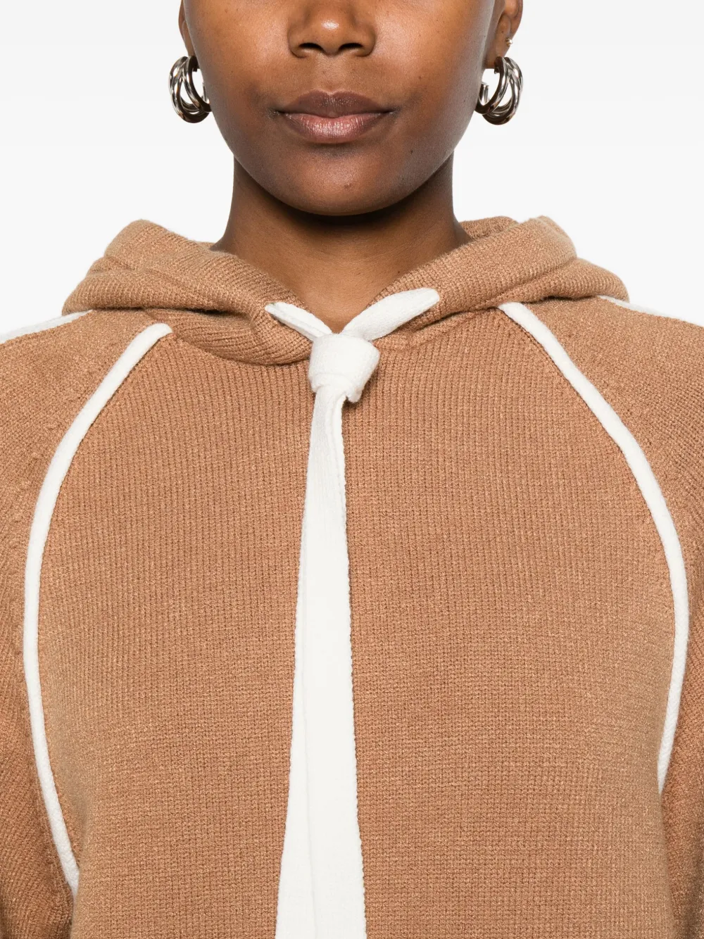 Верблюжий цвет контрастная отделка капюшон со шнурком длинные рукава ребристый низ ребристые манжеты