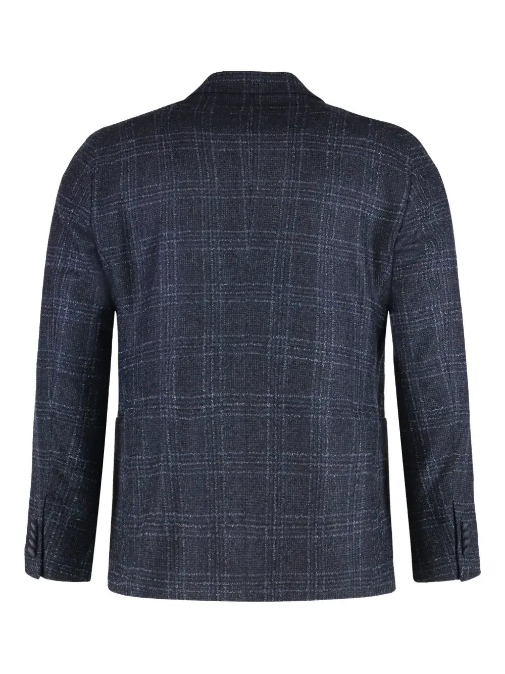 Синий клетчатый узор двубортная застежка острые лацканы длинные рукава манжеты на пуговицах