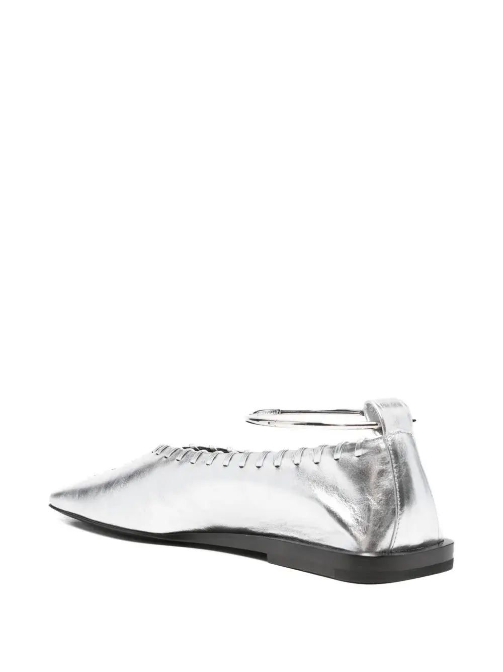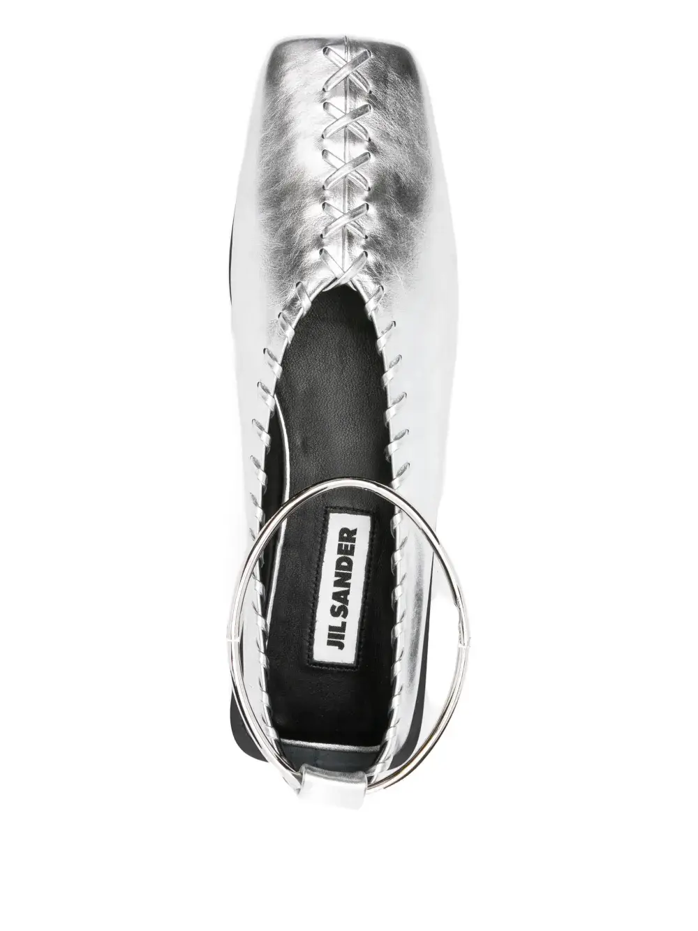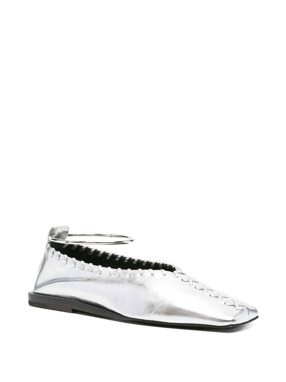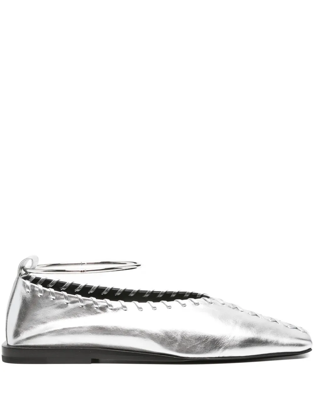 Серебристый оттенок телячья кожа браслет на щиколотке детали прострочки квадратный носок плоская подошва