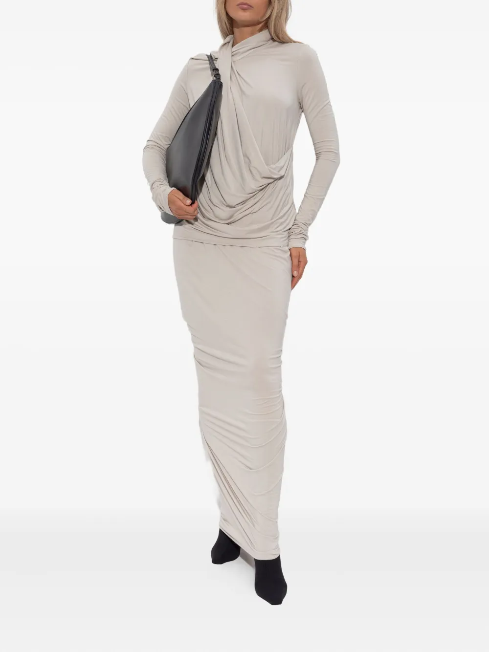 Светло-бежевый воротник-хомут драпированный дизайн длинные рукава присборенная талия