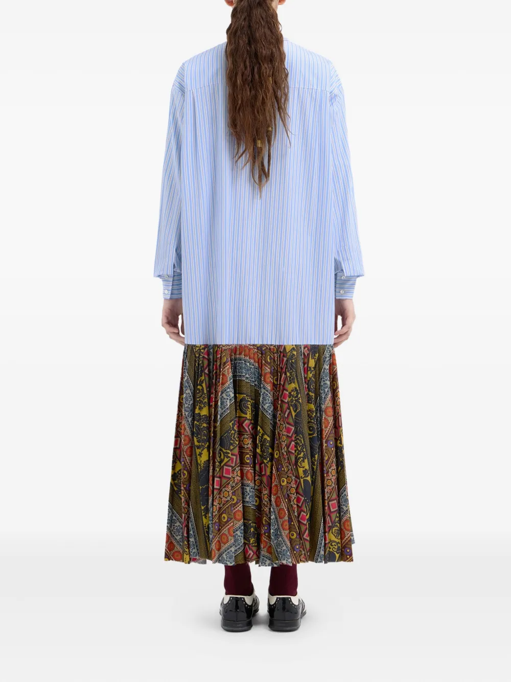 Синий полосатый узор застежка на пуговицы накладной карман длинные рукава деталь в виде банта плиссированная юбка юбка с узором «пейсли»