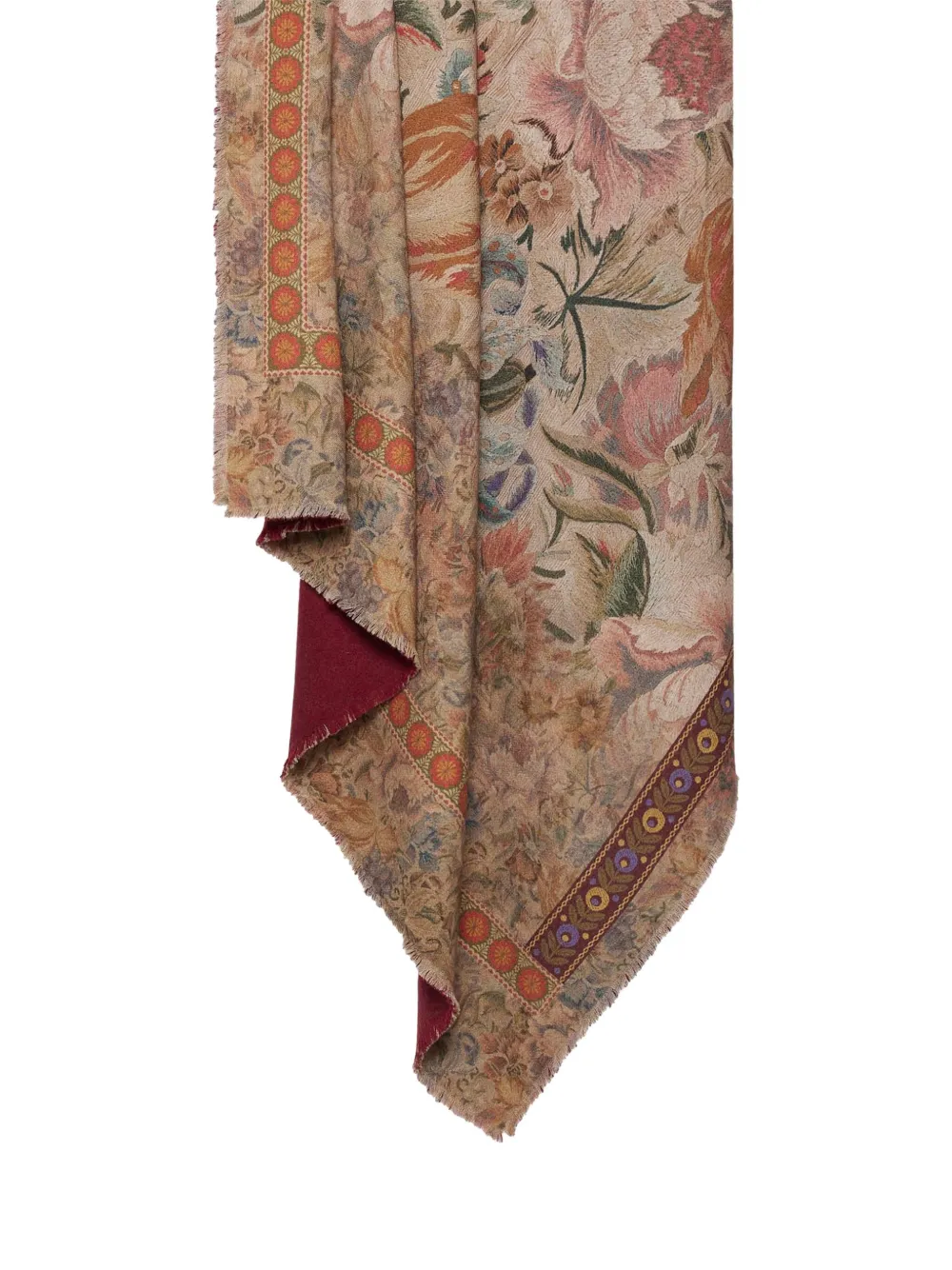 Бордовый цвет цветочный узор прямоугольная форма обработанный край шерсть