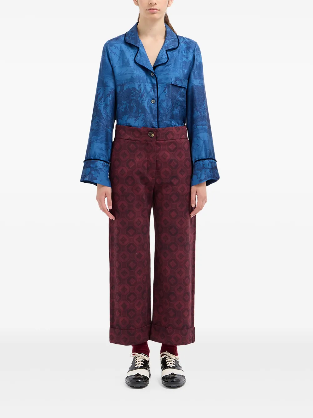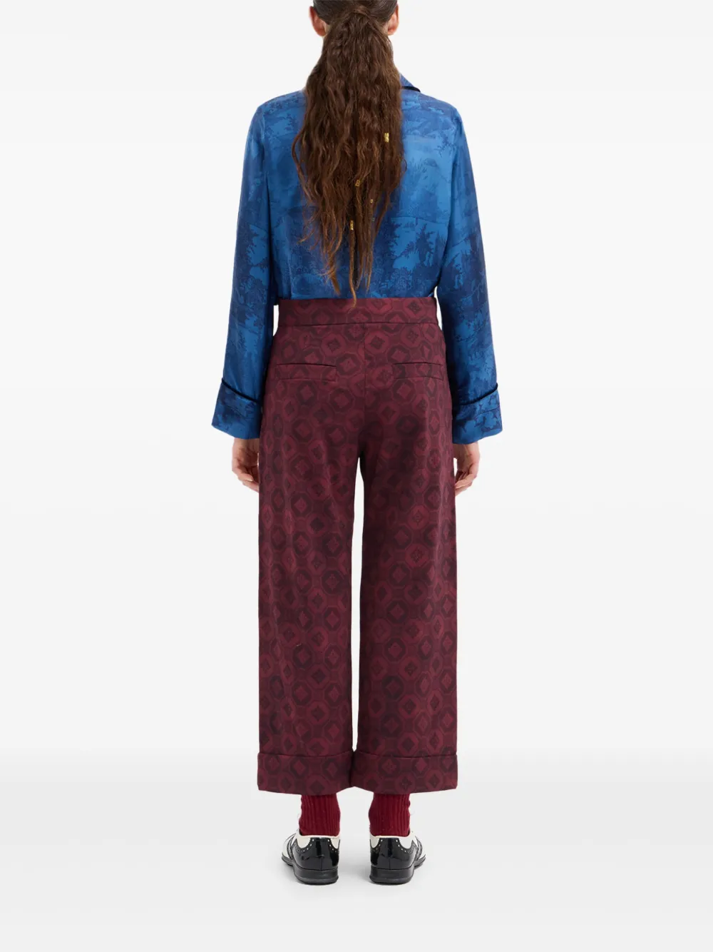 Бордовый геометрический принт застежка на пуговицы манжеты на штанинах