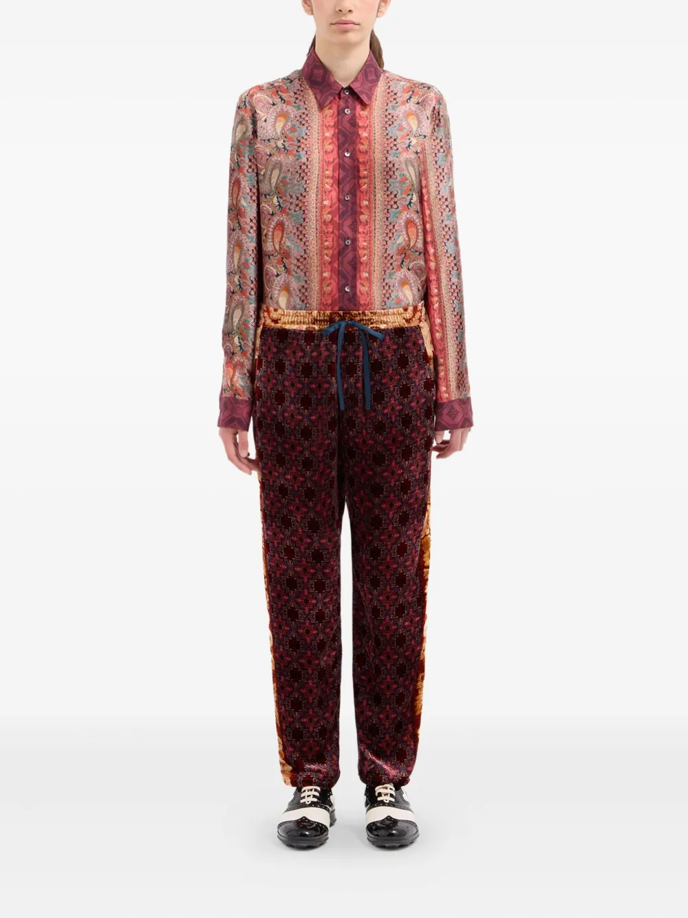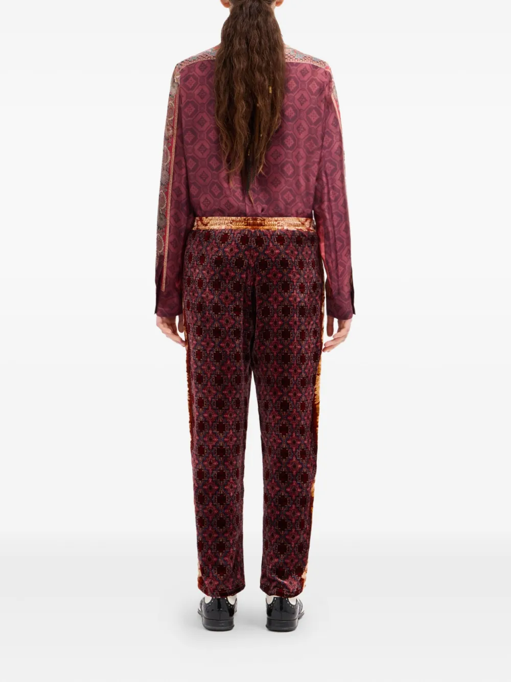 Красный геометрический узор пояс на завязке боковые вставки прямые брючины
