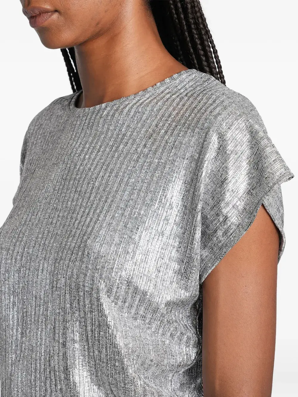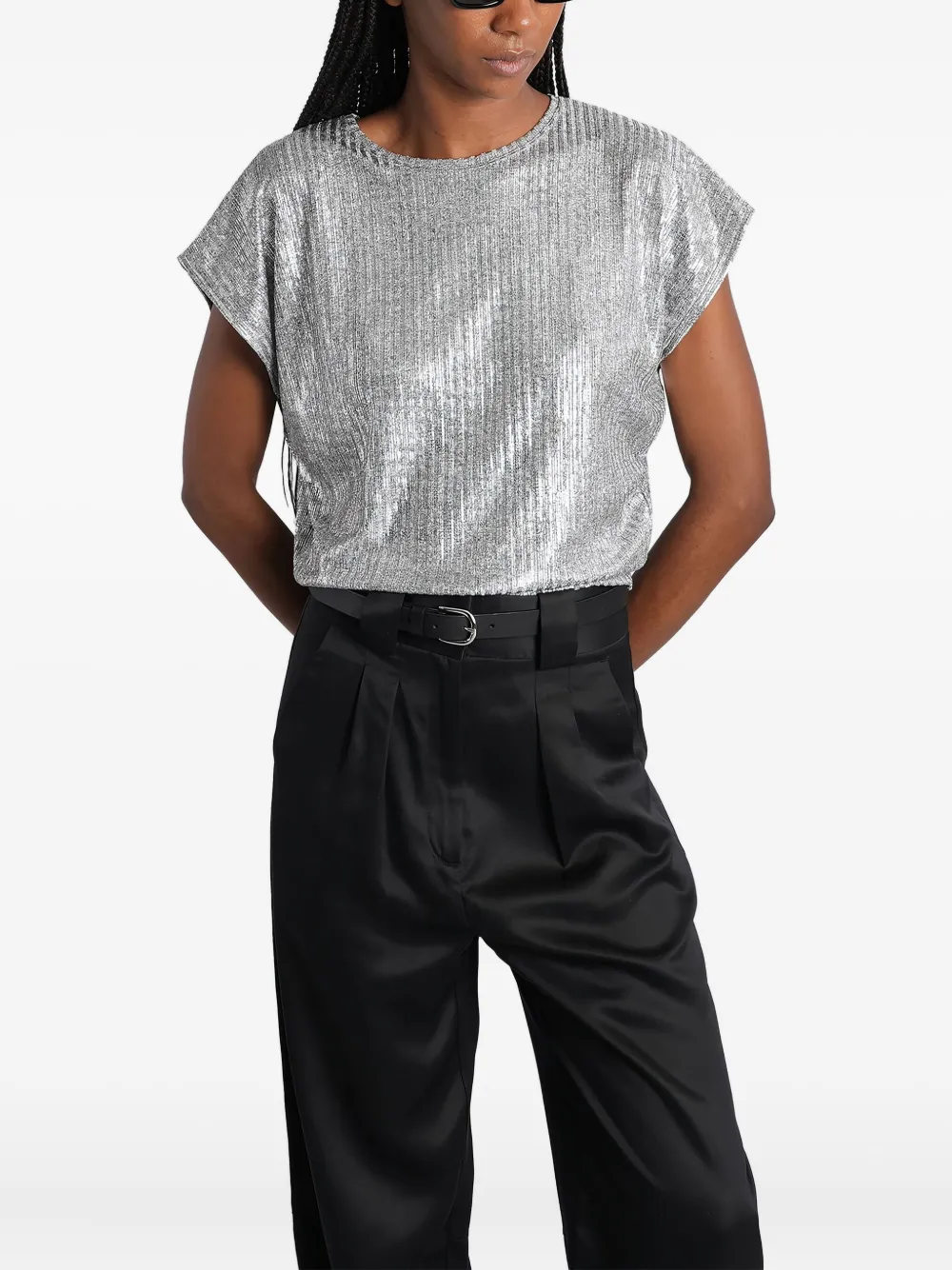 Топ в рубчик с эффектом металлик IRO, серебряный