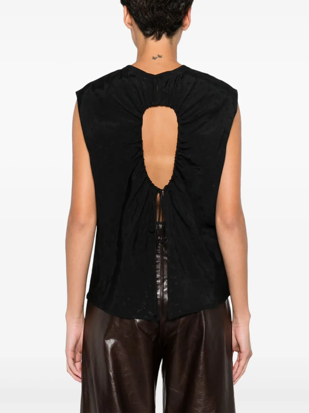 Черный жаккардовый безрукавный топ с круглым вырезом и прямым подолом