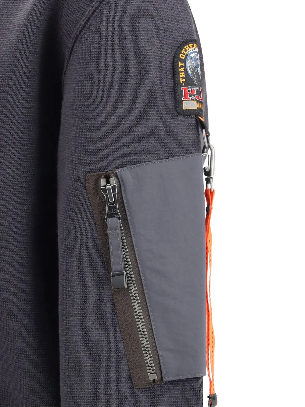 Угольно-серый круглый вырез карман на молнии карман на молнии нашивка на плече рубчатый низ