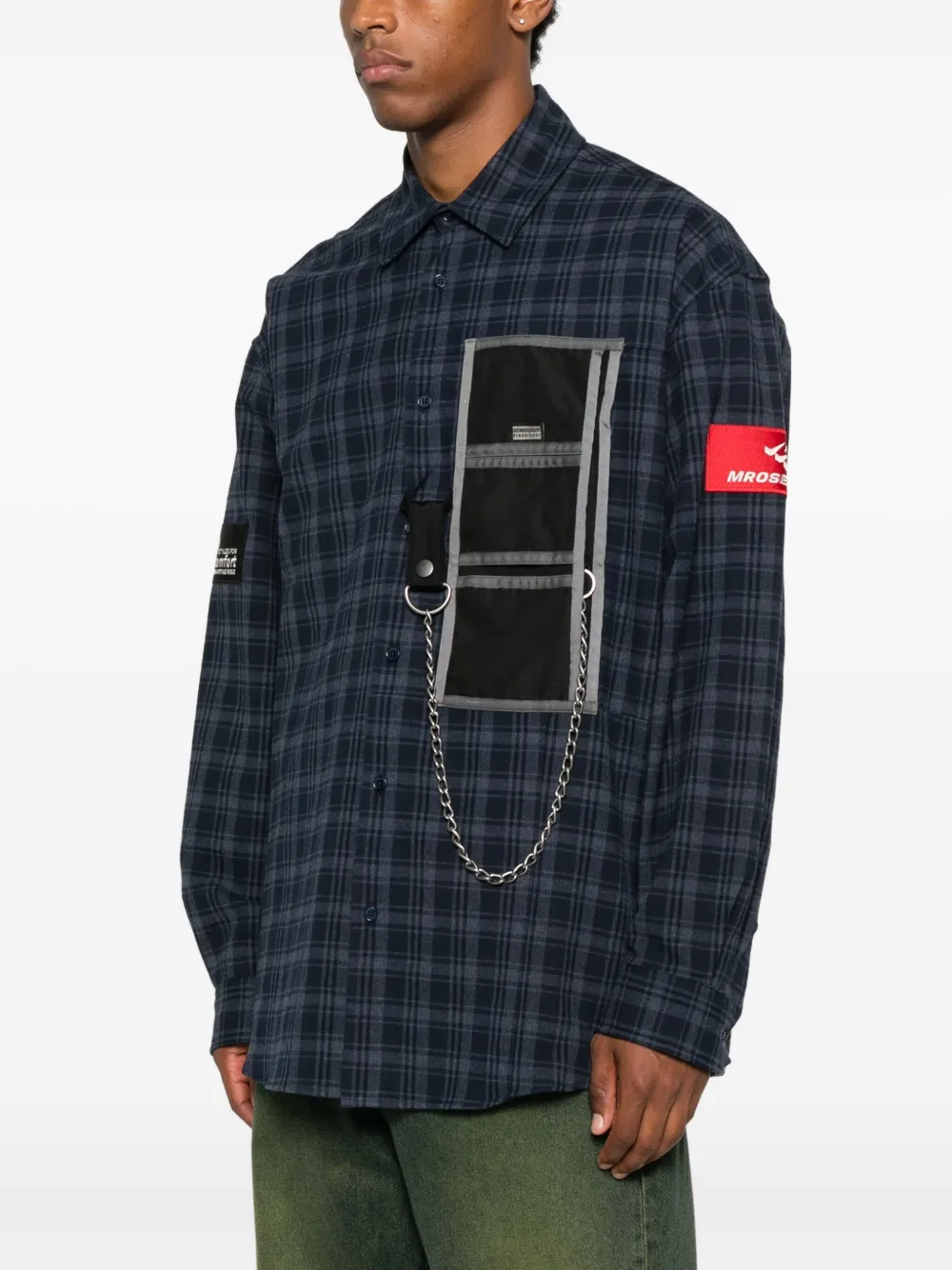 Рубашка в клетку с цепочным декором Martine Rose, синий