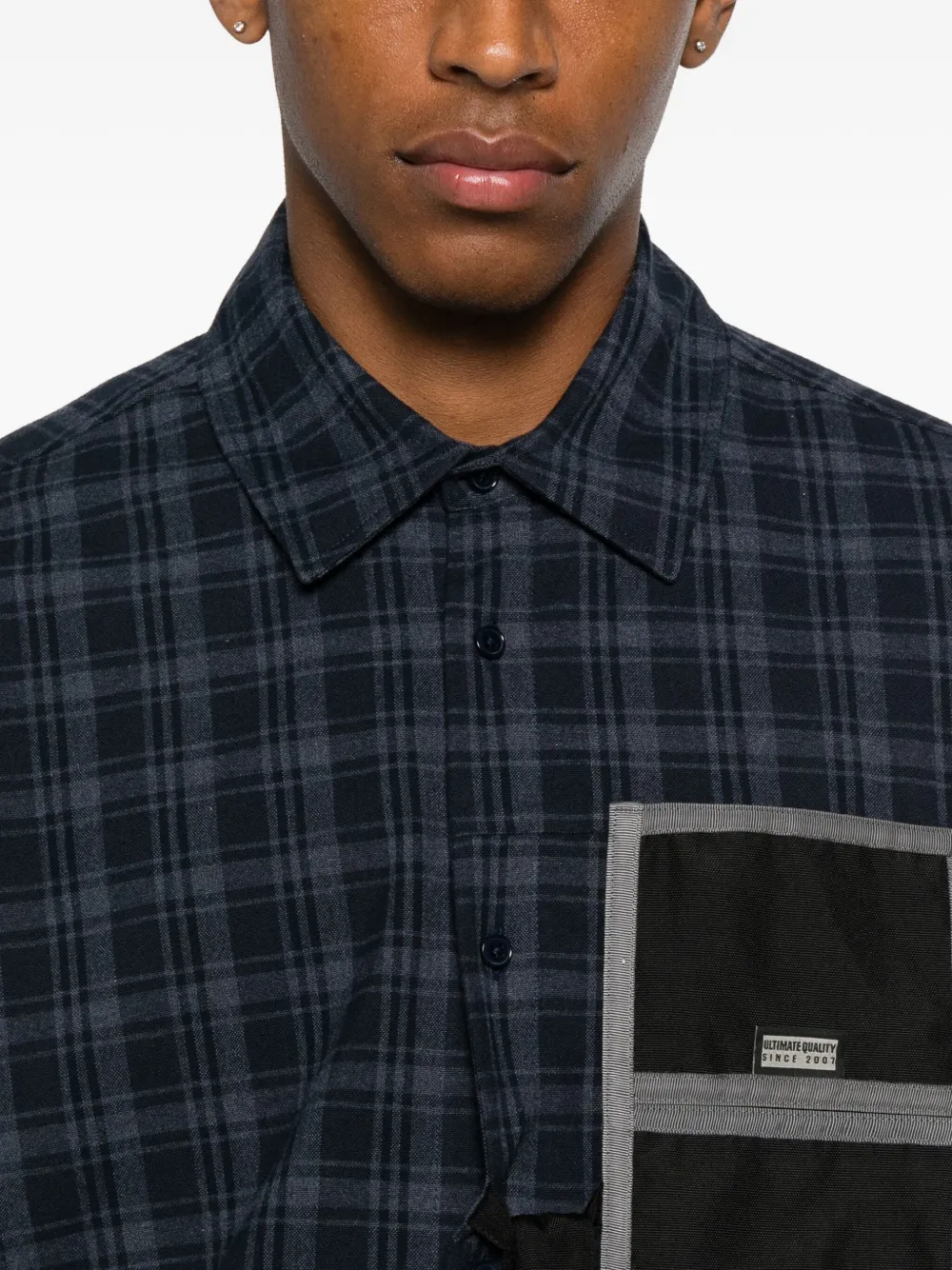 Темно-синий клетчатый узор декор в виде цепочки нашивка с логотипом длинные рукава застежка на пуговицы