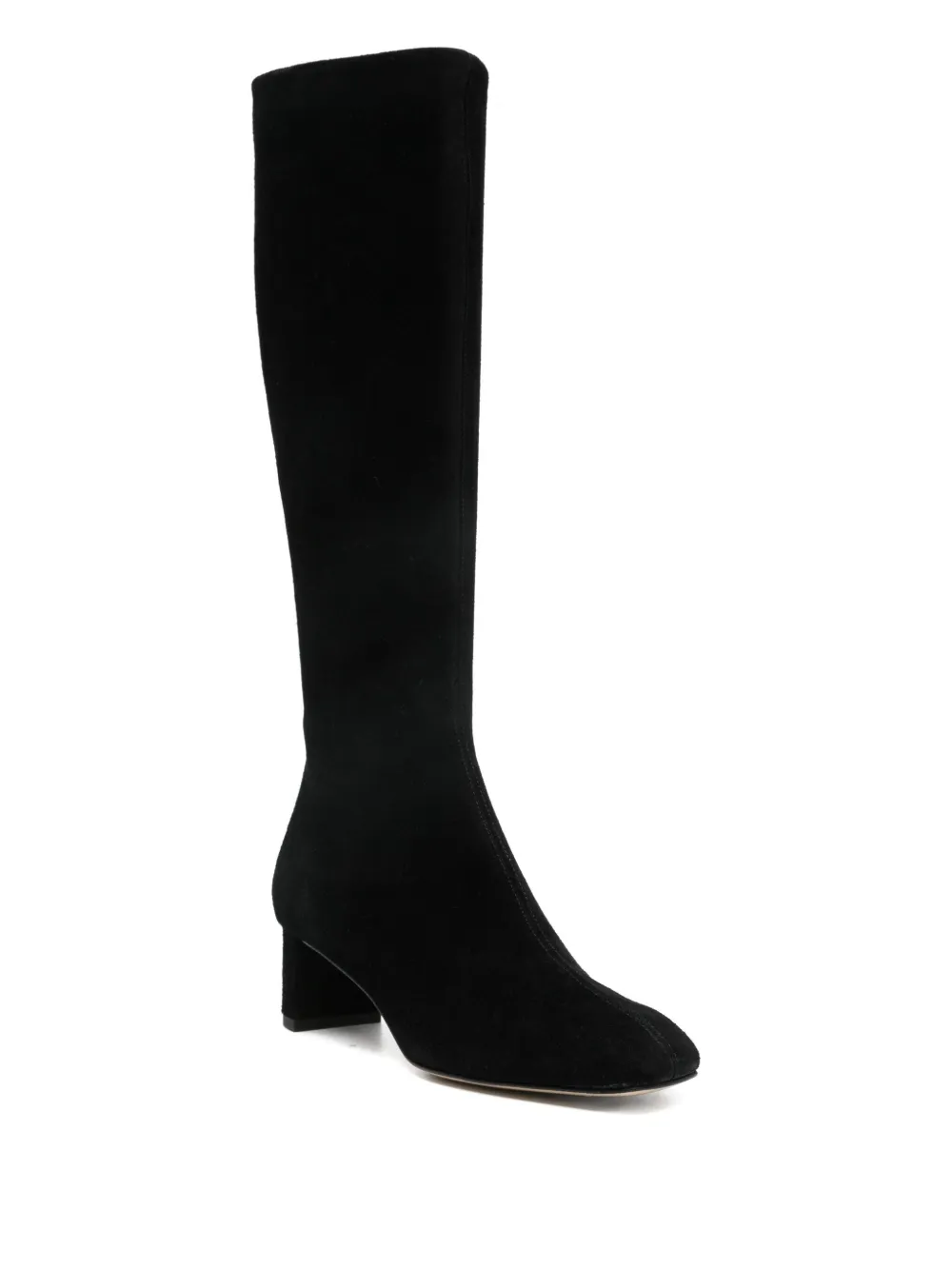 Черныйверх из замшикаблук-«блочок»голенище до коленаквадратный носокзастежка-молния сбоку
