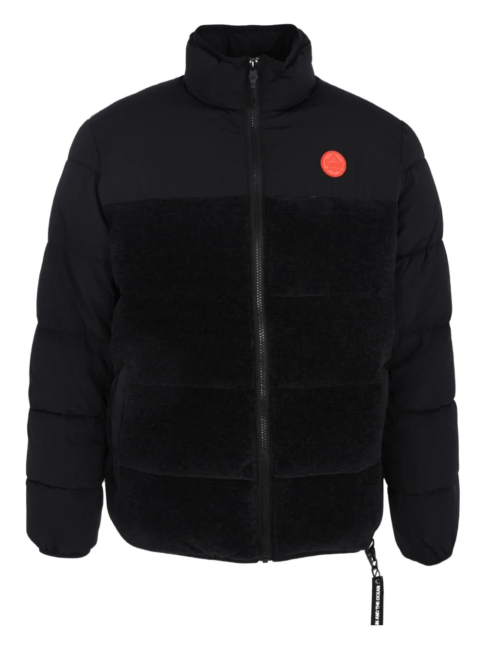 Черный застежка-молния спереди высокий воротник длинные рукава нашивка с логотипом на груди