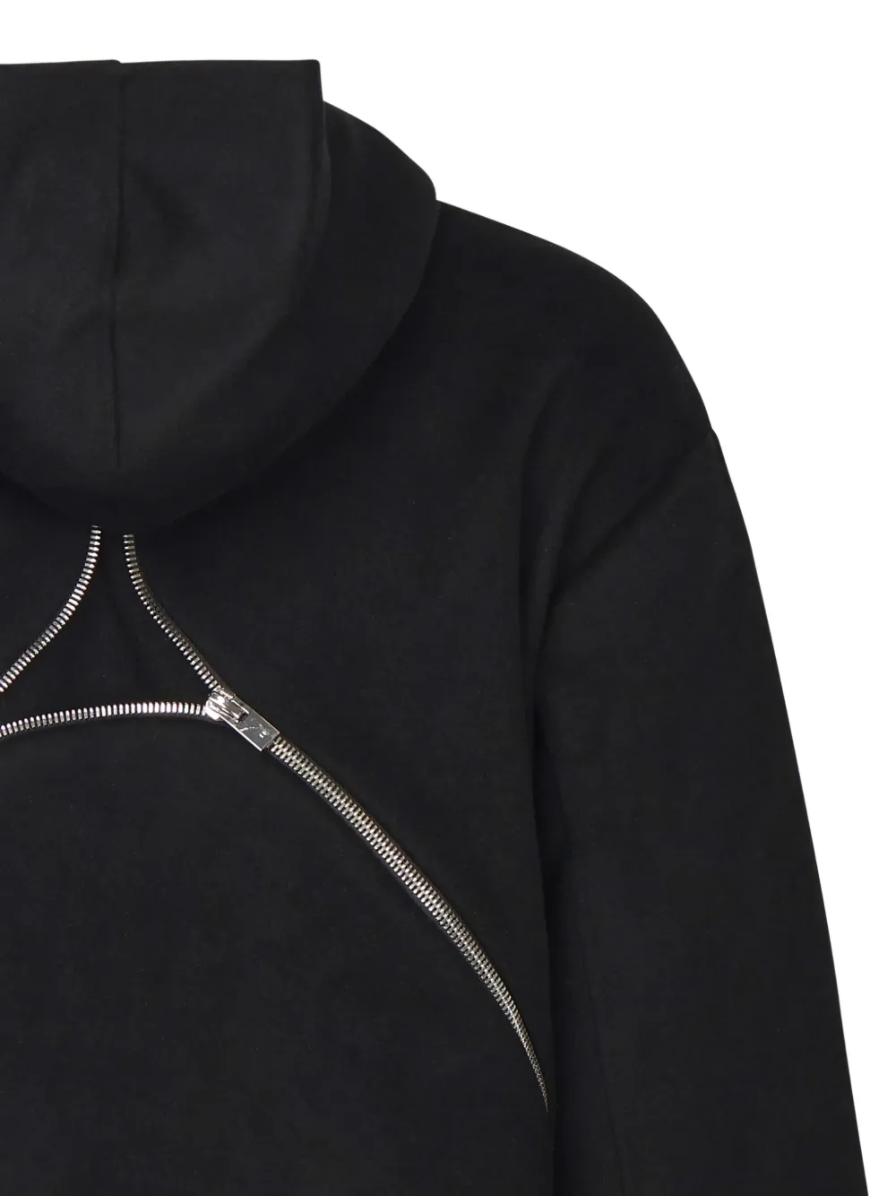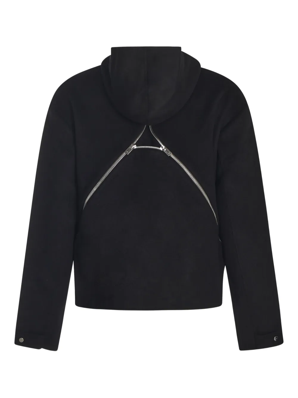 Черный дизайн с капюшоном застежка на молнии длинные рукава манжеты на пуговицах