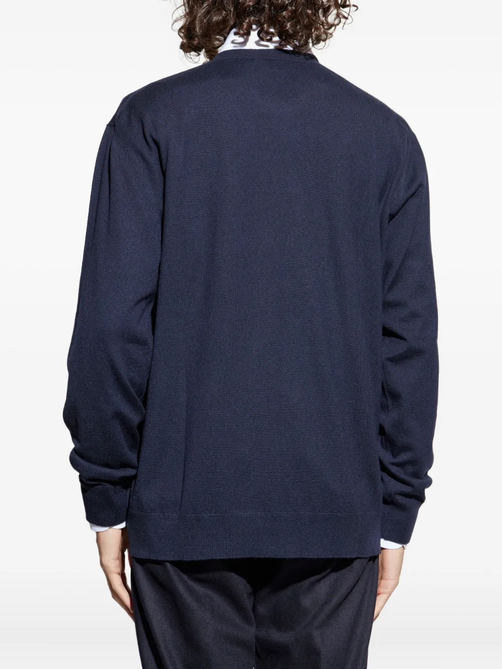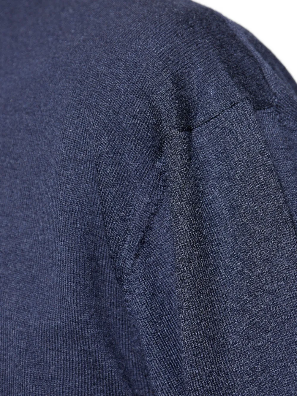 Темно-синий круглый вырез длинные рукава ребристые манжеты прямой подол смесь кашемира и шерсти