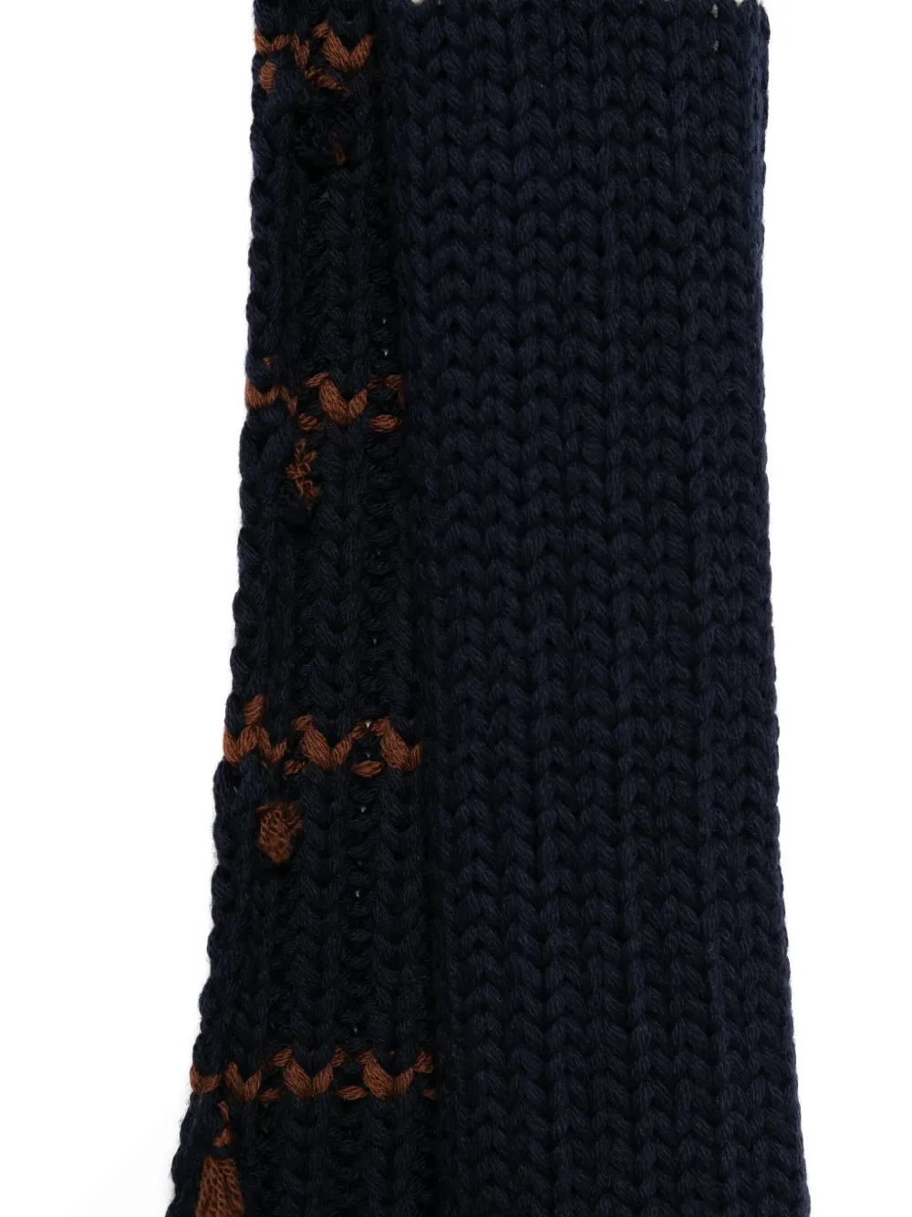Темно-синий в полоску отделка из перьев вязаная текстура