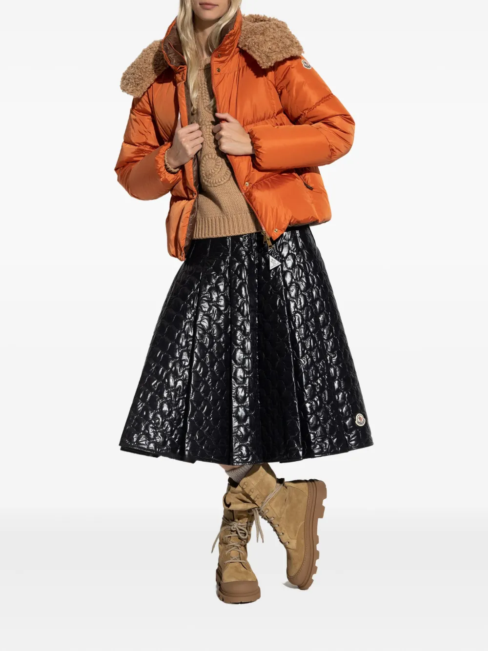 Оранжевый стеганый капюшон отделка из овчины застежка на кнопки патч с логотипом