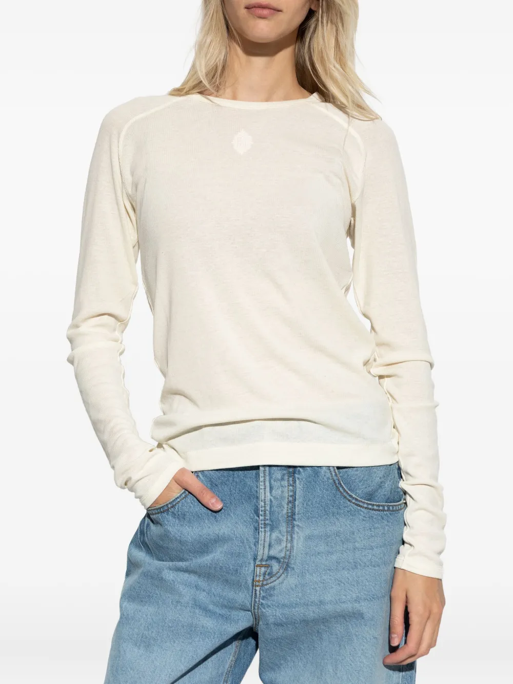 Оф-вайт реглан рукава вышитый логотип круглый вырез длинные рукава