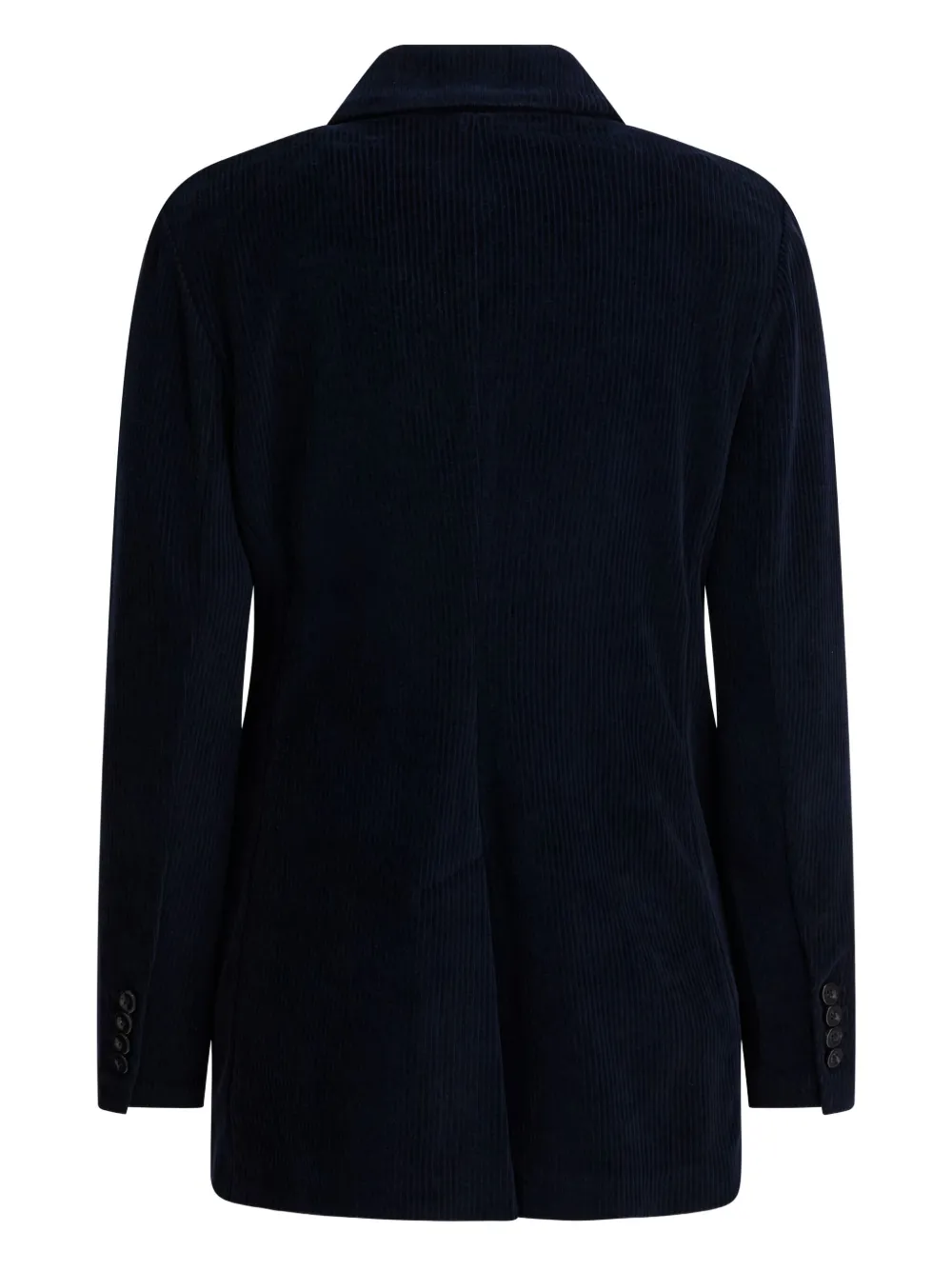 Темно-синий вельветовая текстура застежка на двубортные пуговицы накладные карманы с клапанами острые лацканы длинные рукава