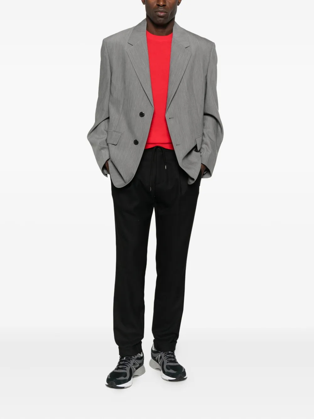 Черные брюки с плиссированной передней частью, шнурком на талии, боковыми карманами, манжетами на штанинах и прямым кроем