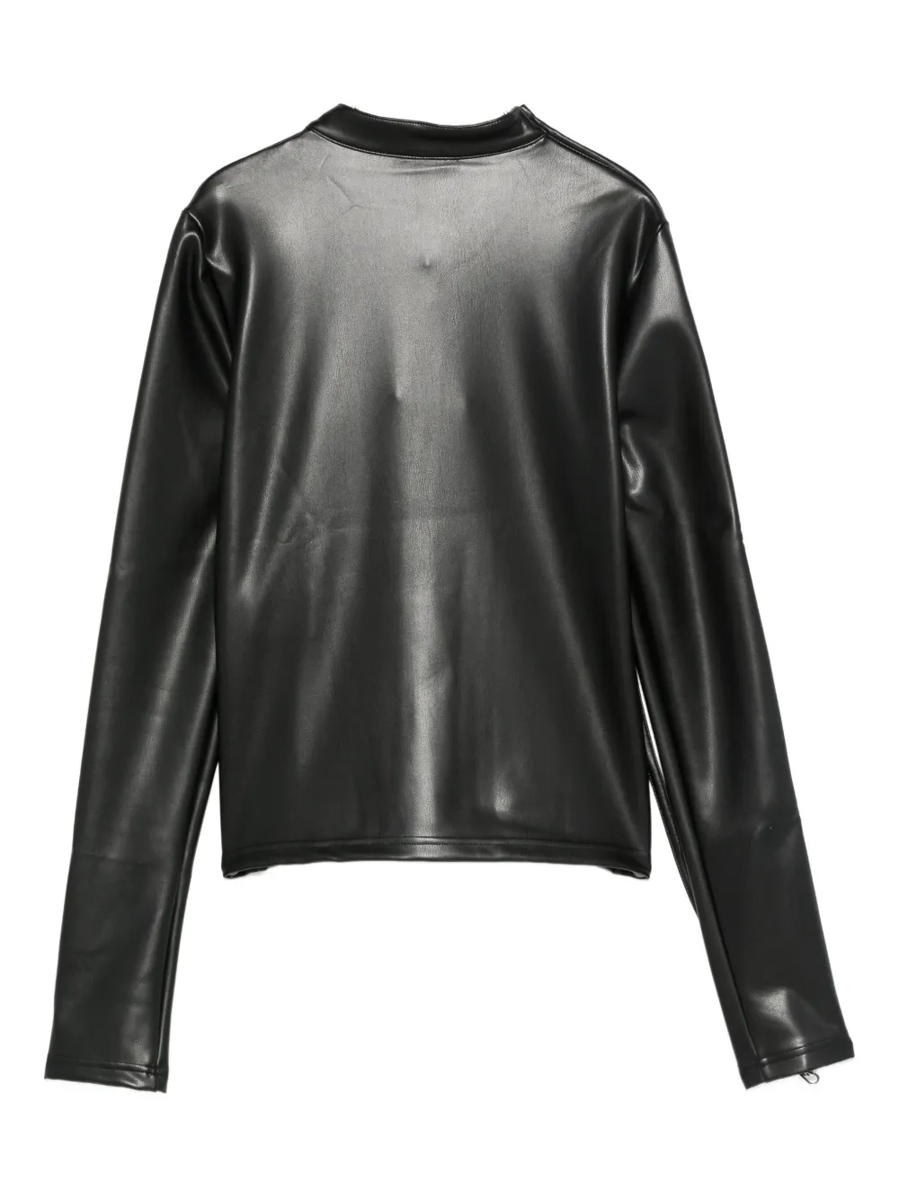 Черный кожа застежка-молния воротник-стойка длинные рукава прямой подол