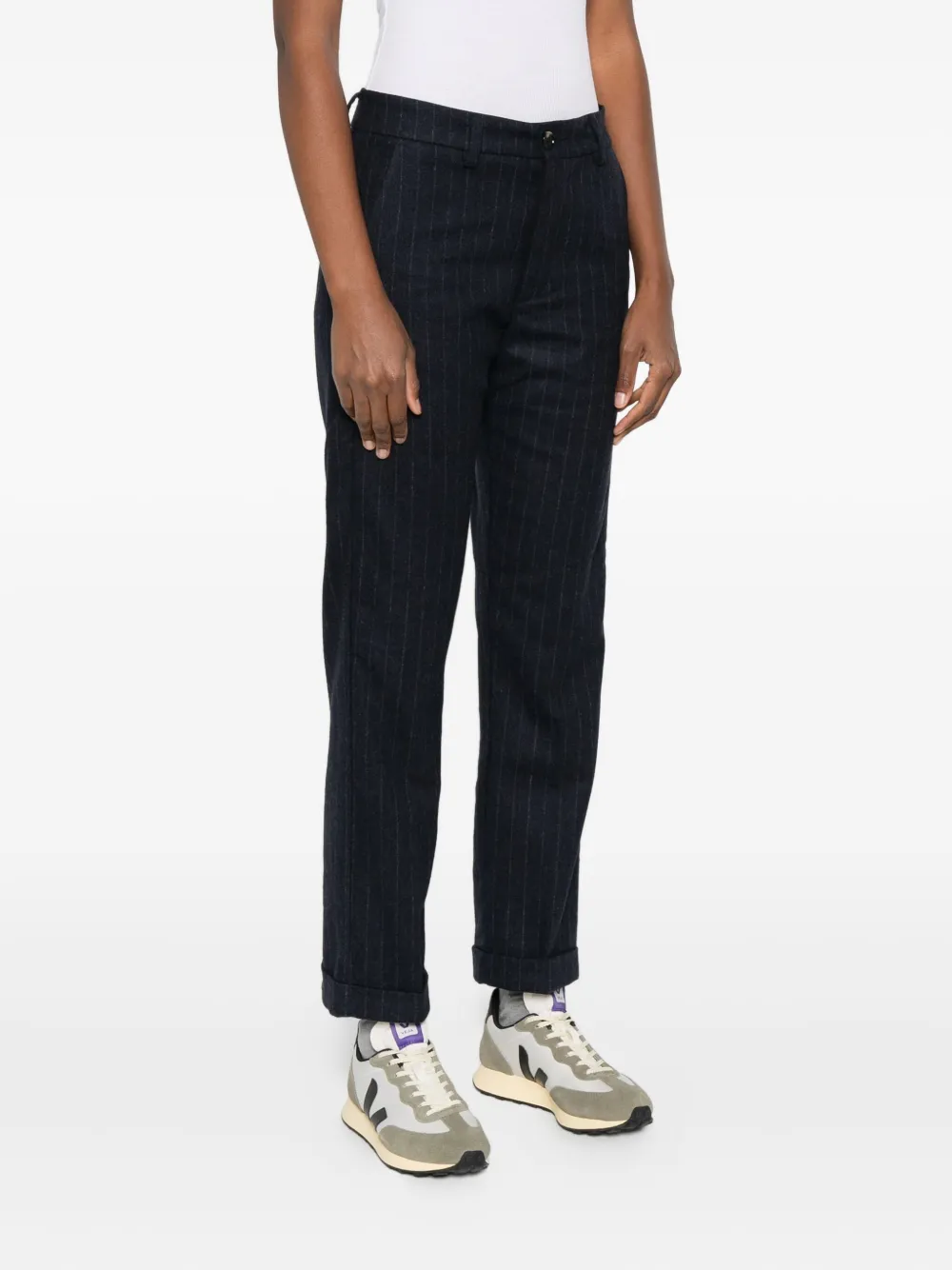 Шерстяные брюки в тонкую полоску TRUE AVENUE, синий