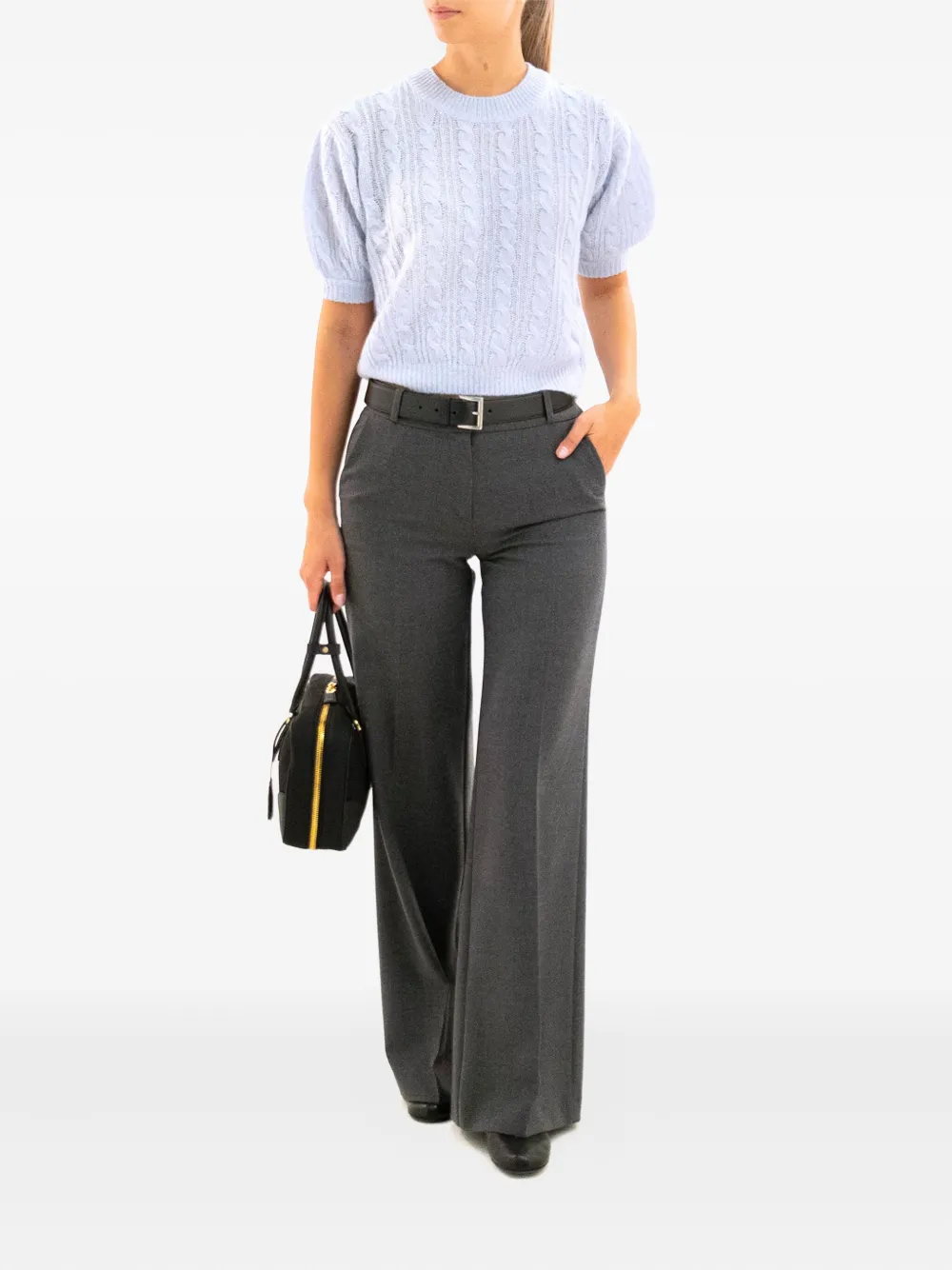 Свитер фактурной вязки с объемными рукавами Lisa Yang, фиолетовый