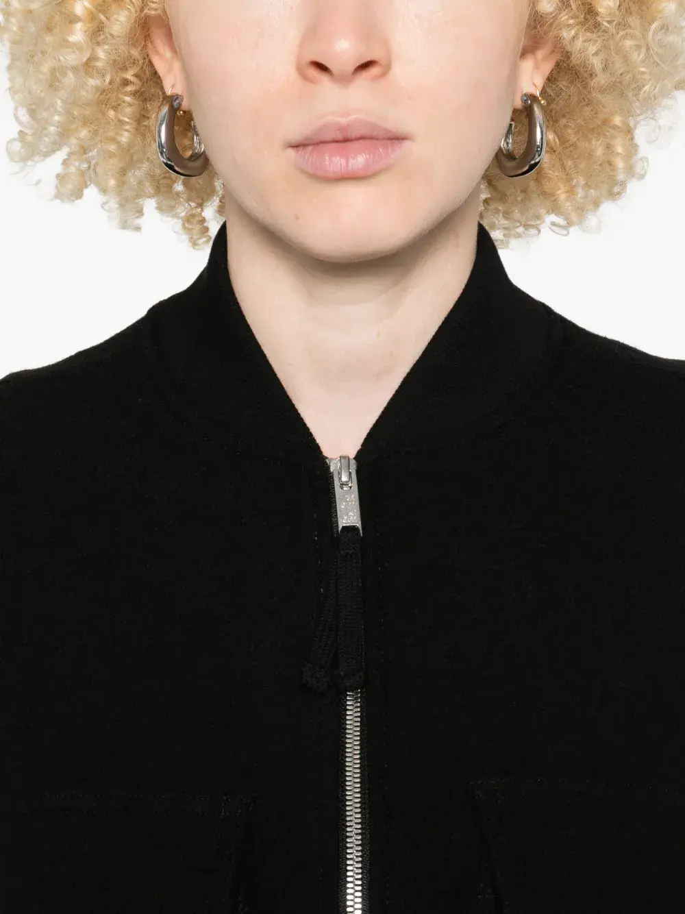 Черный застежка-молния нагрудные карманы с клапанами реберные манжеты укороченная длина
