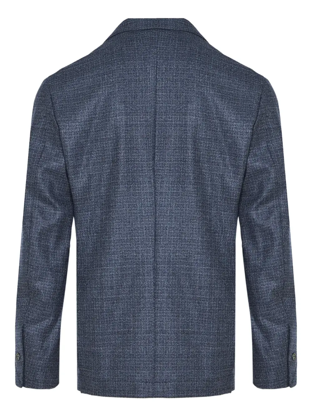 Синий шерсть накладные карманы лацканы с вырезом длинные рукава