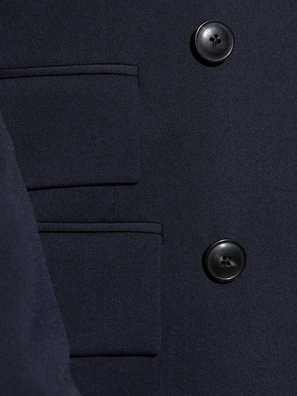 Синий двубортный застежка на пуговицы плечи с подплечниками карманы с клапанами прямой край
