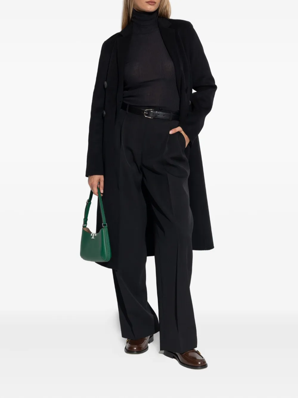 Двубортное шерстяное пальто Tory Burch, черный 63 604₽