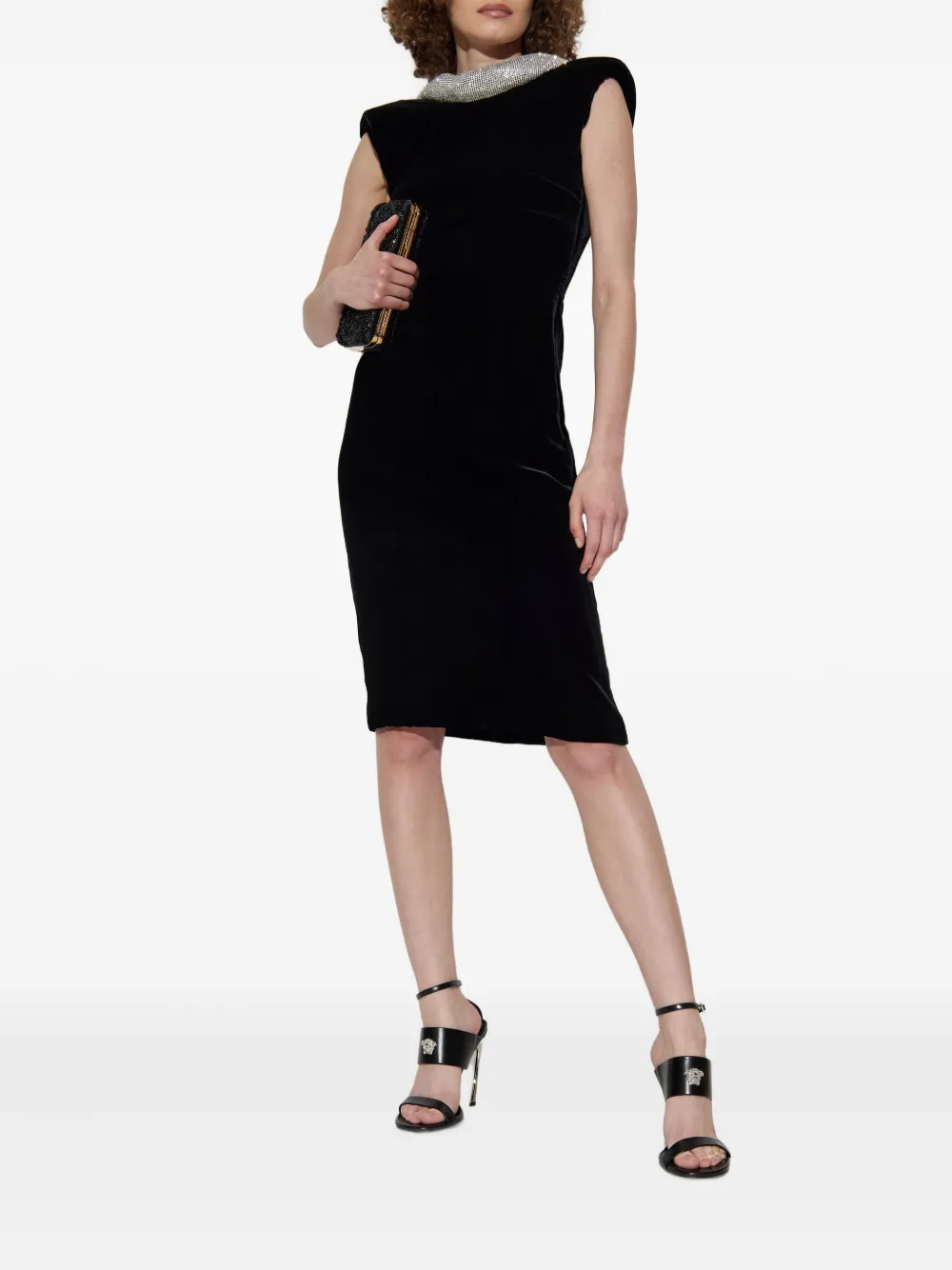 Бархатное платье, украшенное кристаллами VERSACE, черный