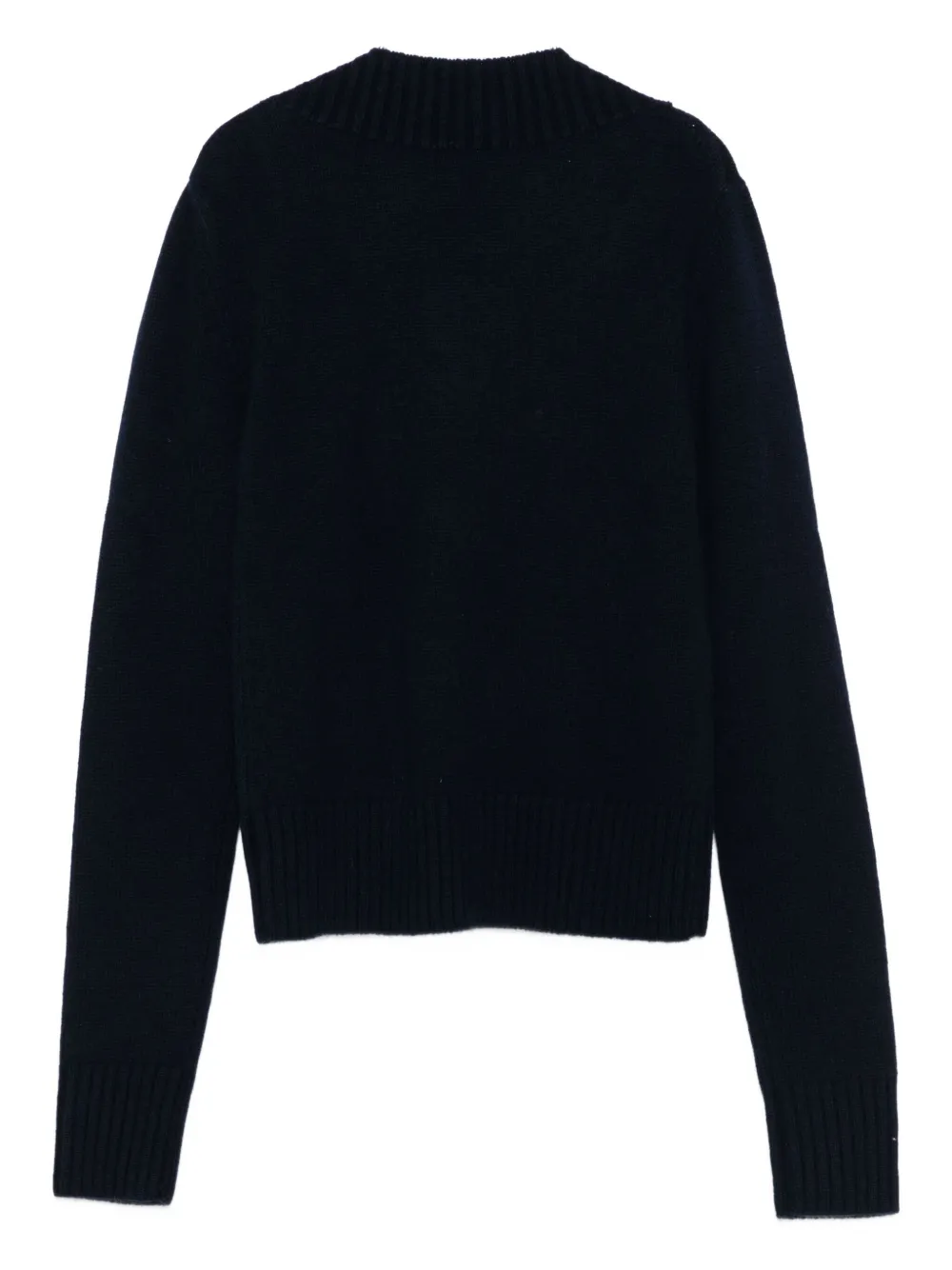 Темно-синий V-образный вырез фактура в рубчик длинные рукава манжеты и низ в рубчик
