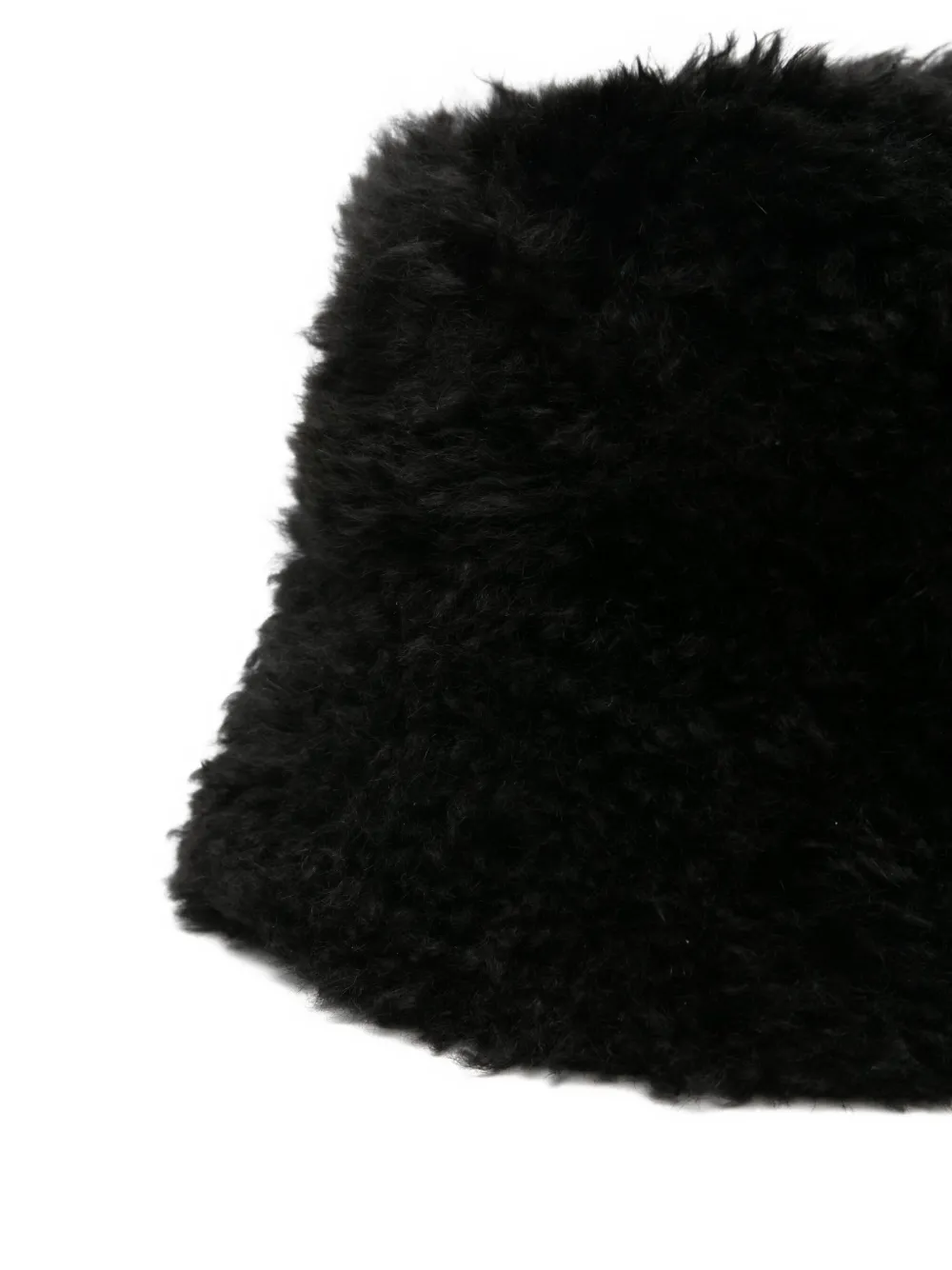 Черная шляпа-ведро из овчины с широкими полями, низкой тульей и пушистой текстурой