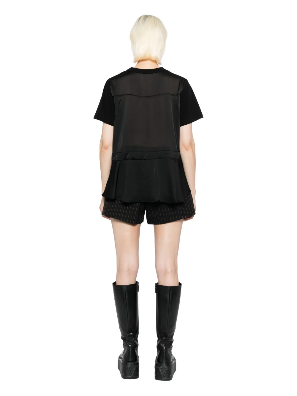 Черный приталенный на кулиске короткие рукава полупрозрачные вставки