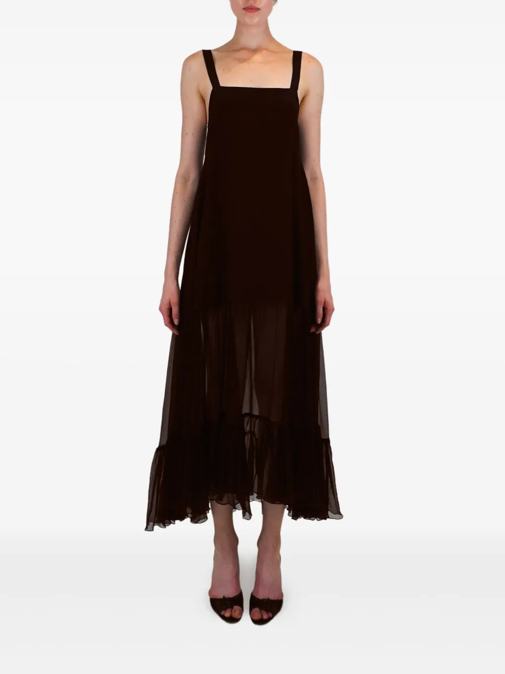 Коричневый топ без рукавов с квадратным вырезом и оборчатым подолом