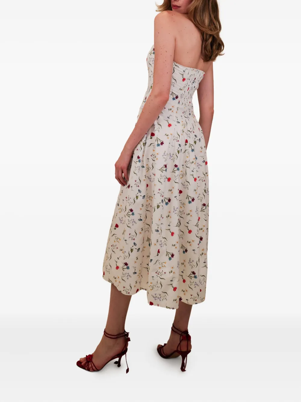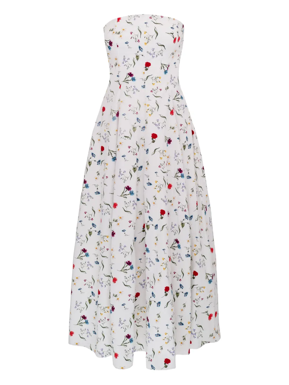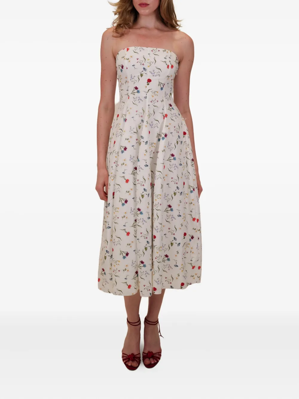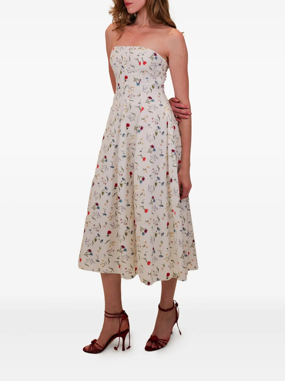 Сливочно-белое платье без бретелек с цветочным рисунком и плиссированной юбкой