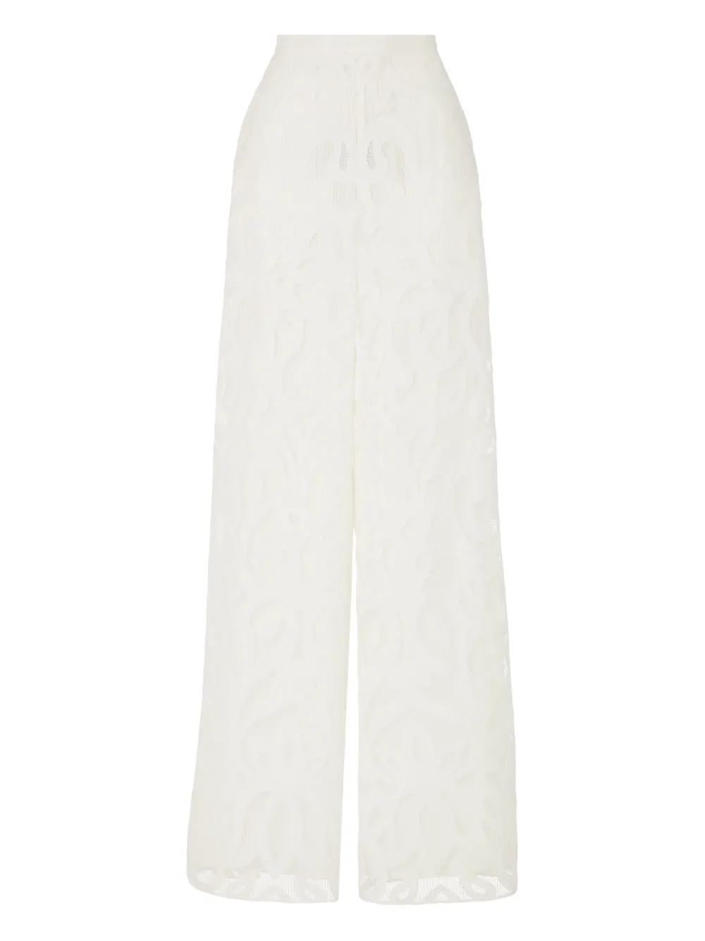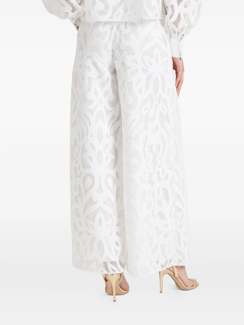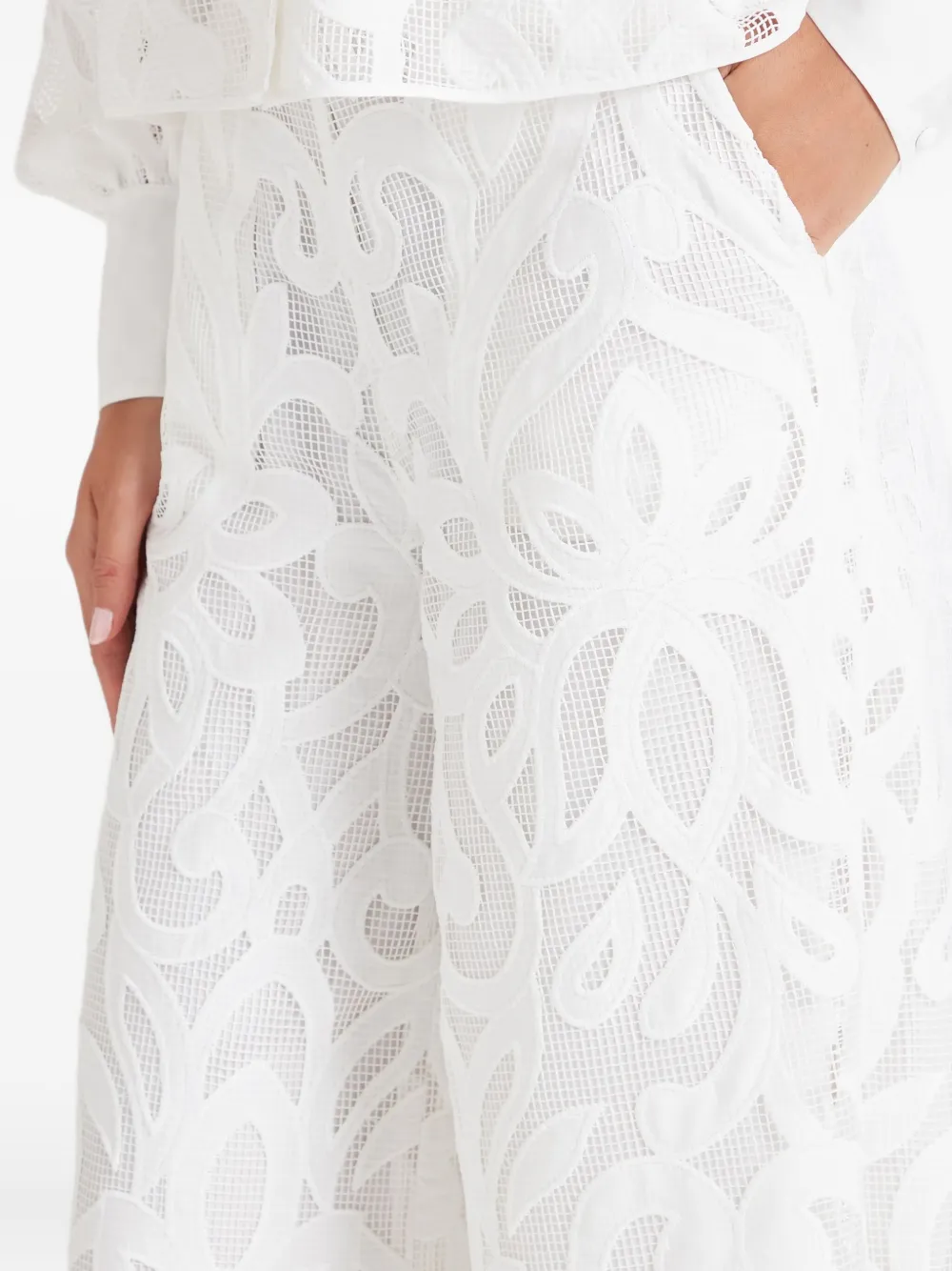 Белый лазерная перфорация цветочный узор широкие брючины высокая талия боковые карманы