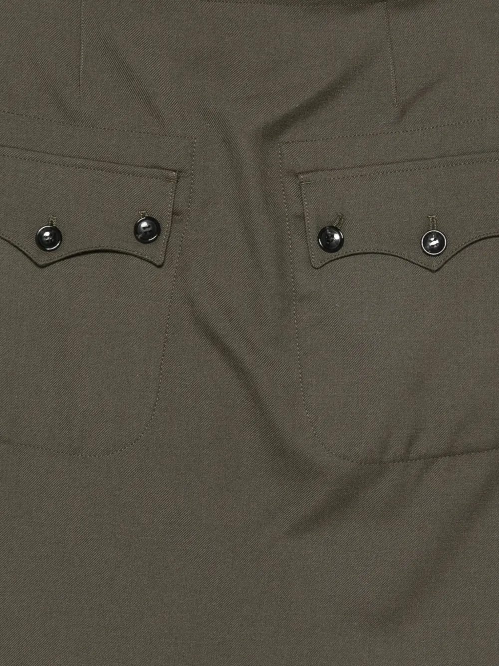 Оливково-зеленый многослойный дизайн, карманы на пуговицах, обернутый пояс, прямая штанина