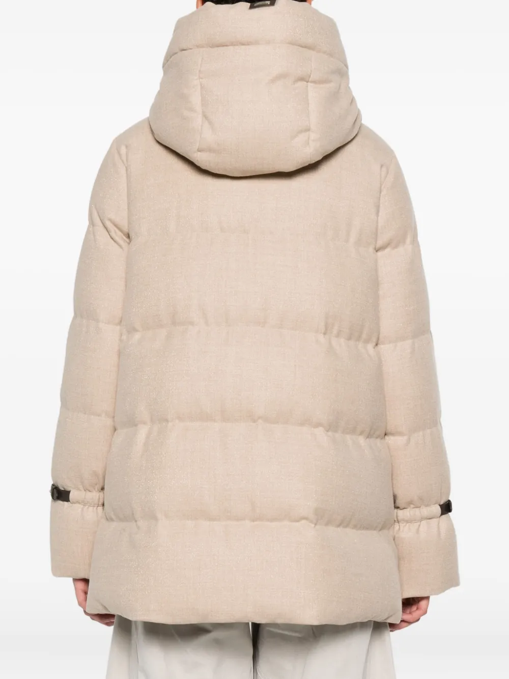 Бежевый стеганый дизайн капюшон застежка-молния спереди шнурок на капюшоне длинные рукава