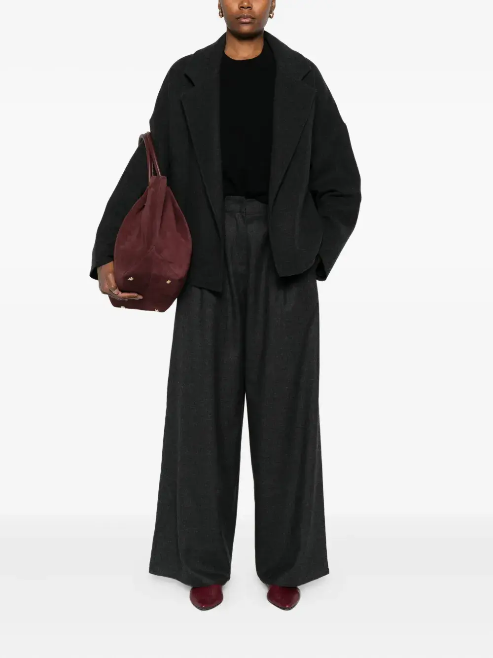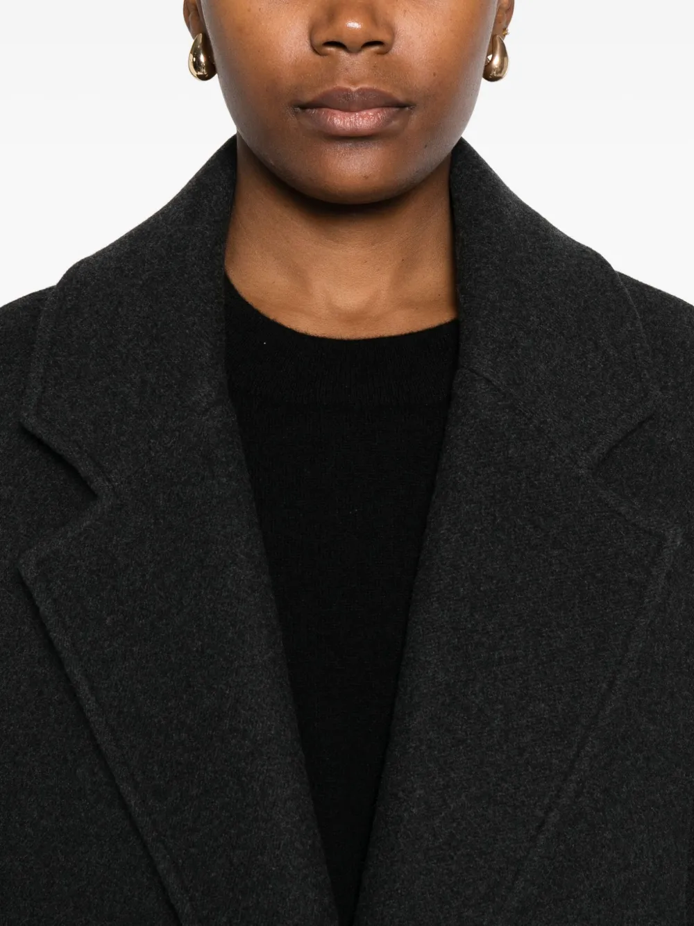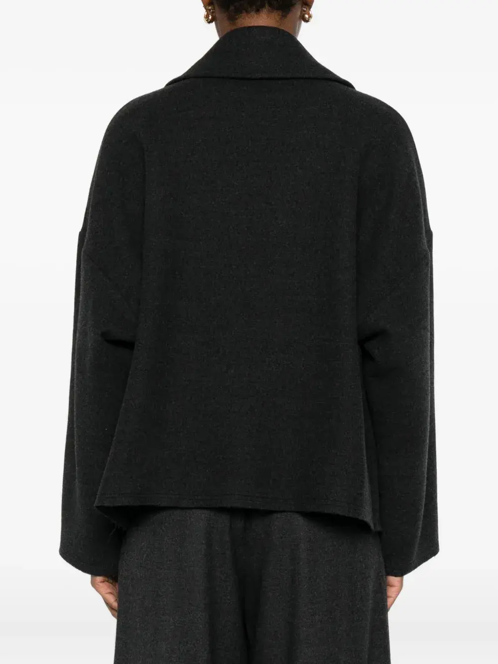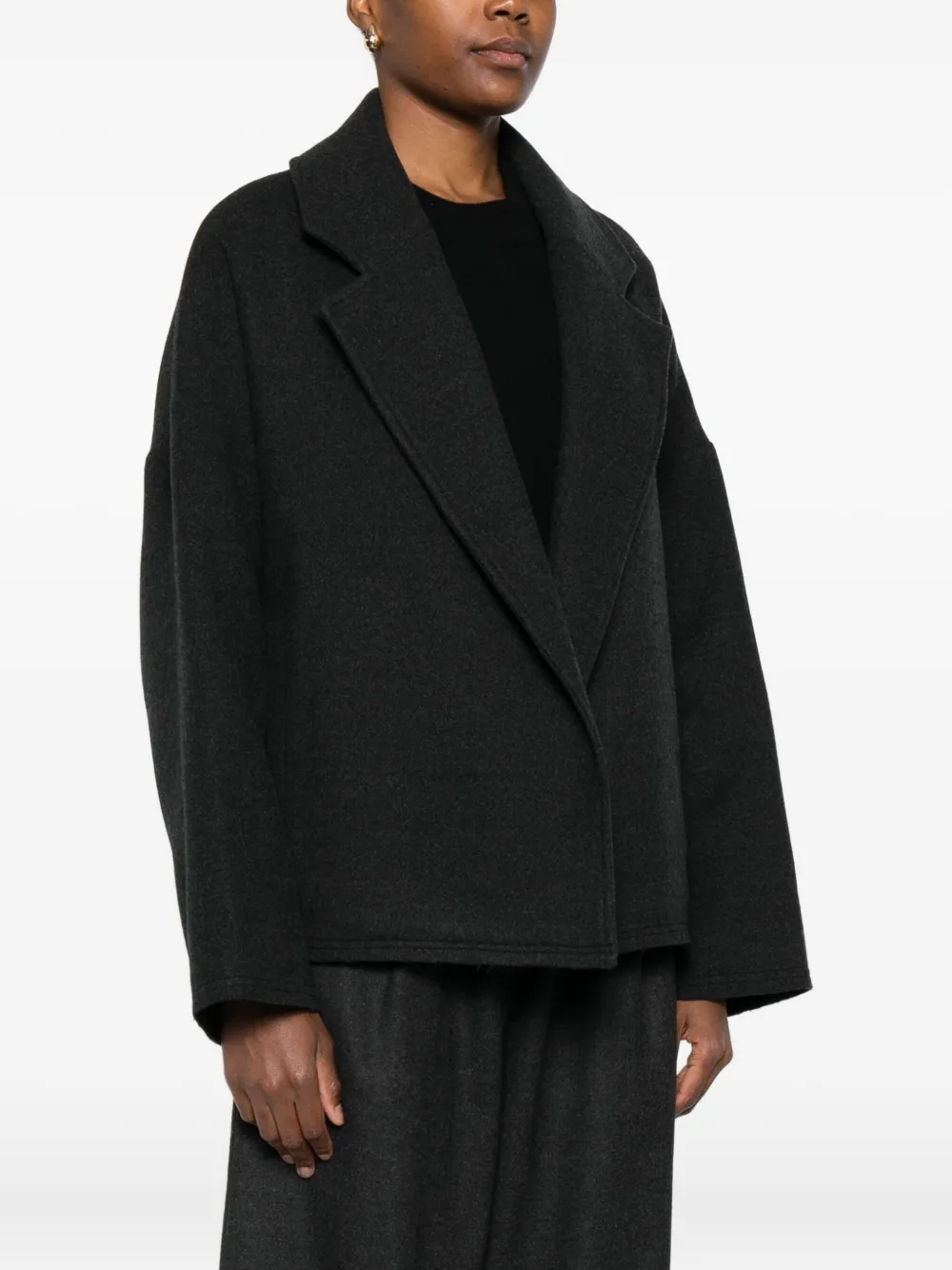 Черный лацканы с вырезом длинные рукава открытый перед