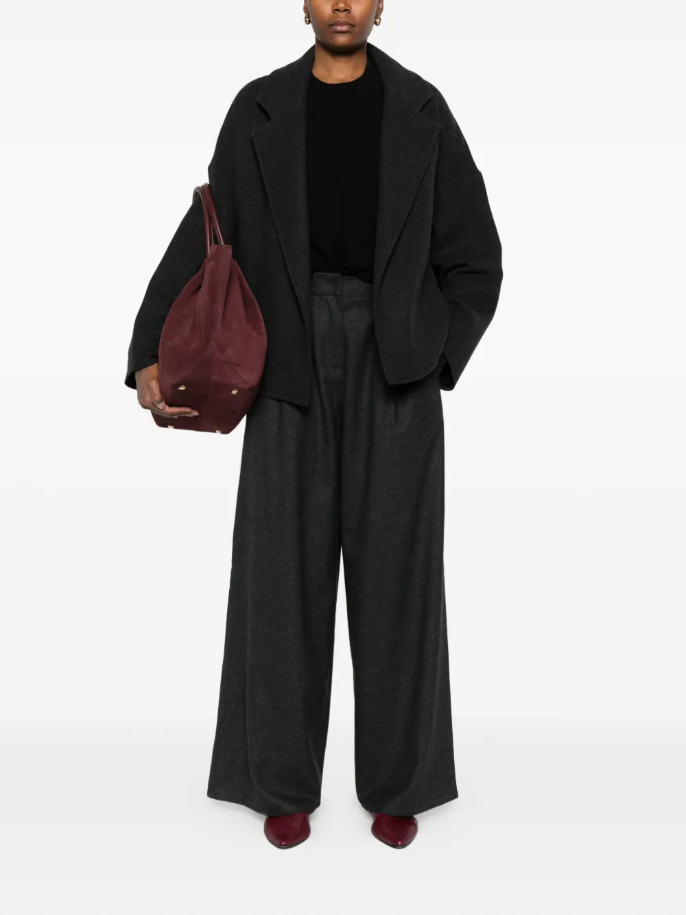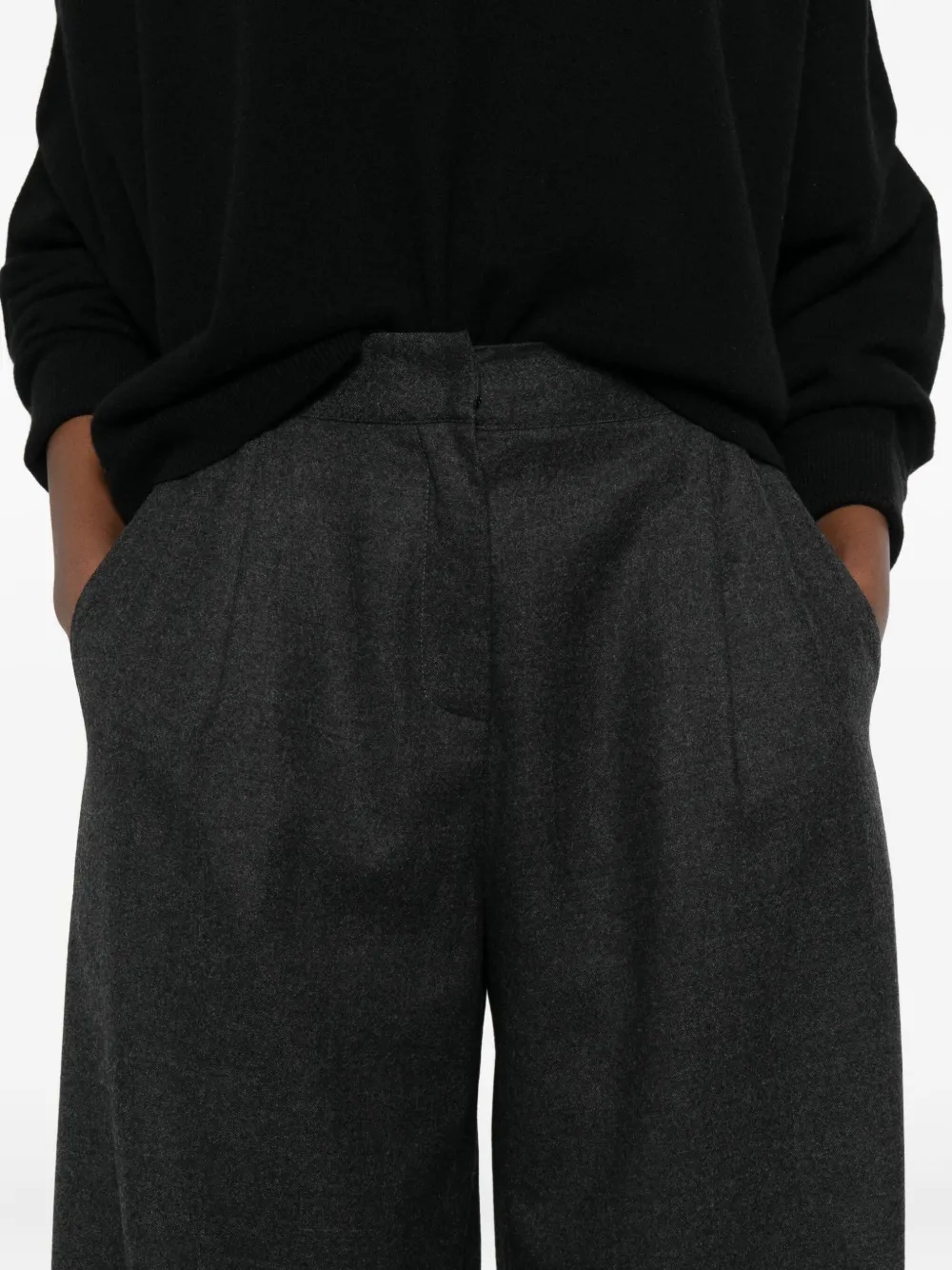 Антрацитово-серый детали с вытачками эластичный задний пояс потайная застежка спереди боковые карманы шерсть