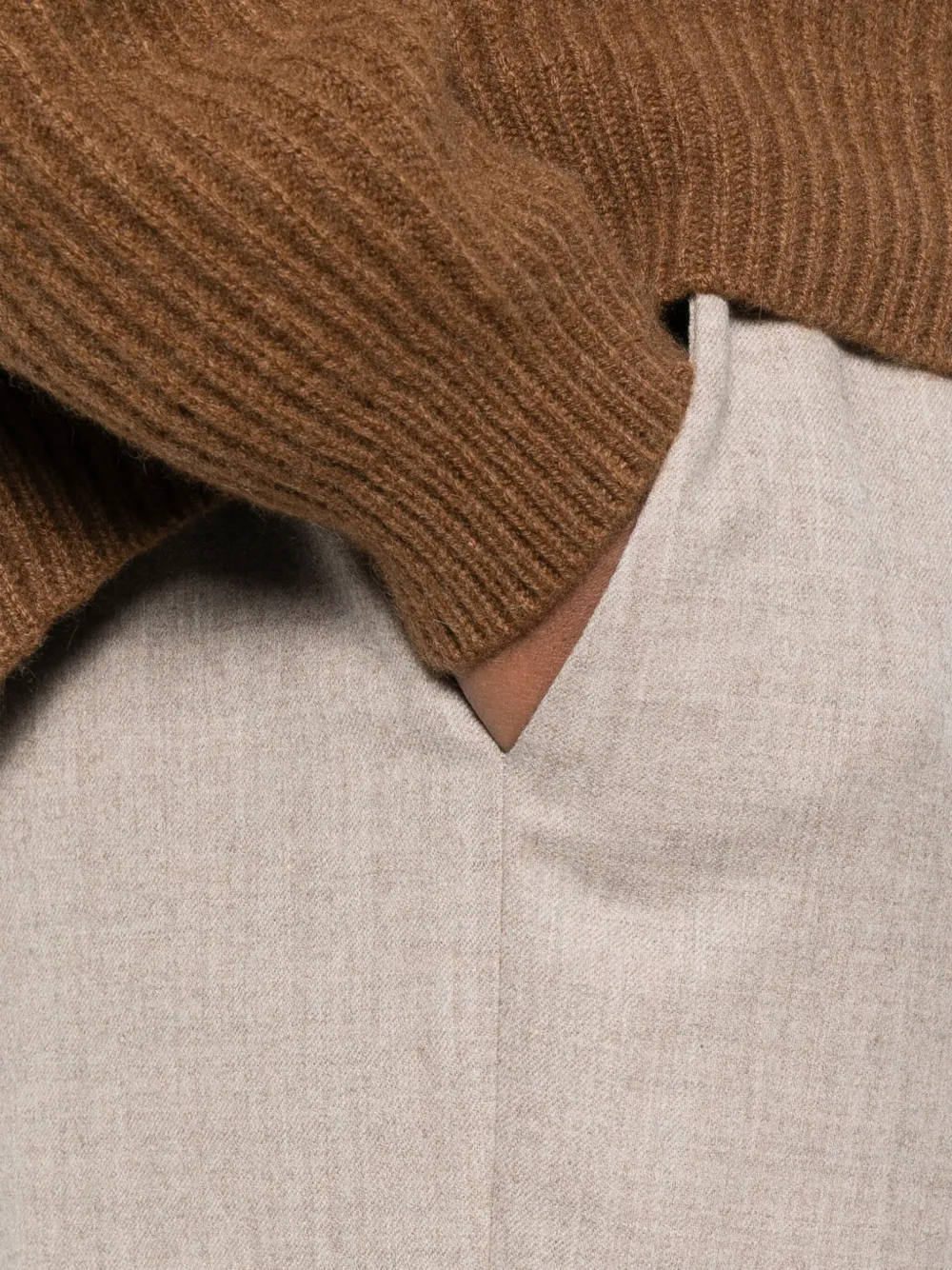 Бежевый эластичный пояс боковые карманы шерсть