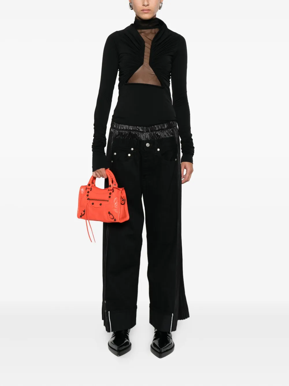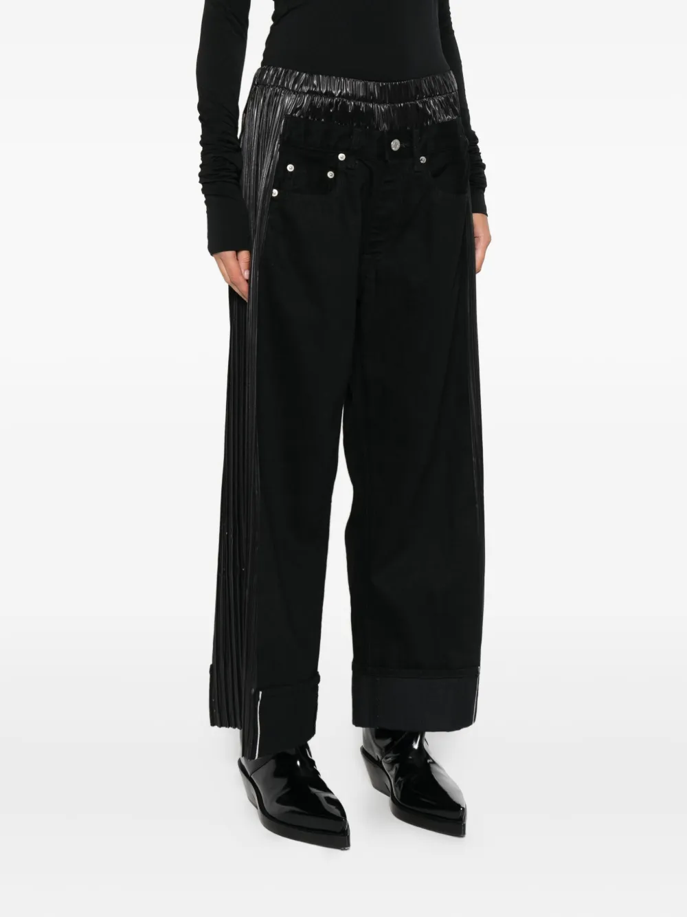 Черный плиссированные боковые вставки эластичный пояс прямые брючины джинсовые вставки