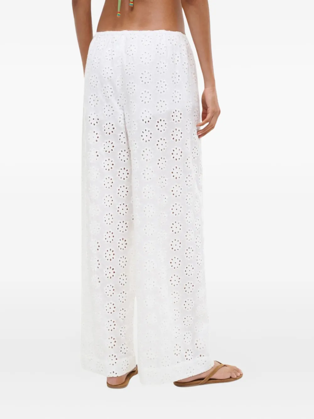 Брюки с вышивкой англез "Bonfire" STAUD, белый