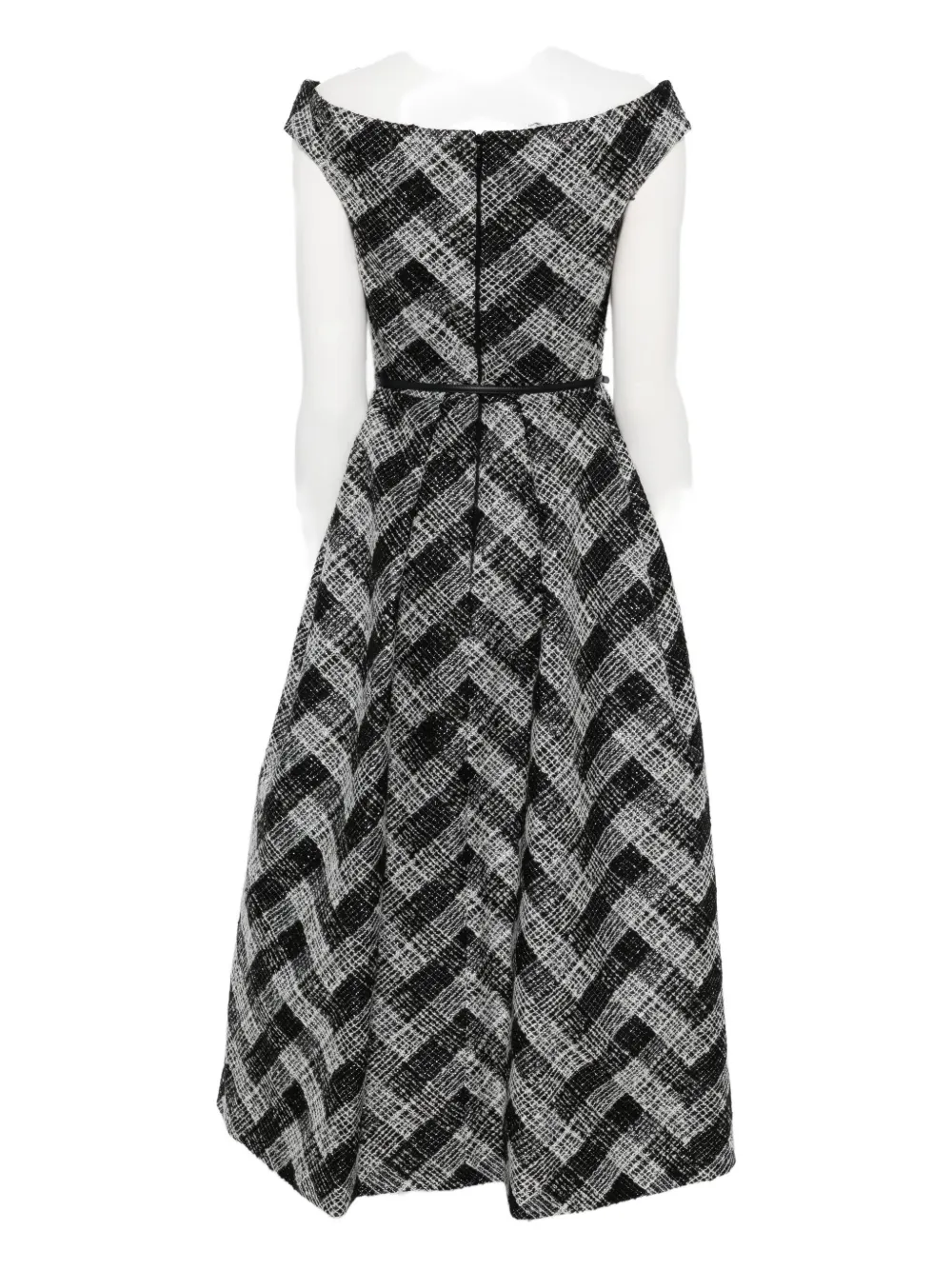 Черно-белый узор "елочка" открытые плечи застежка-молния сзади регулируемый пояс