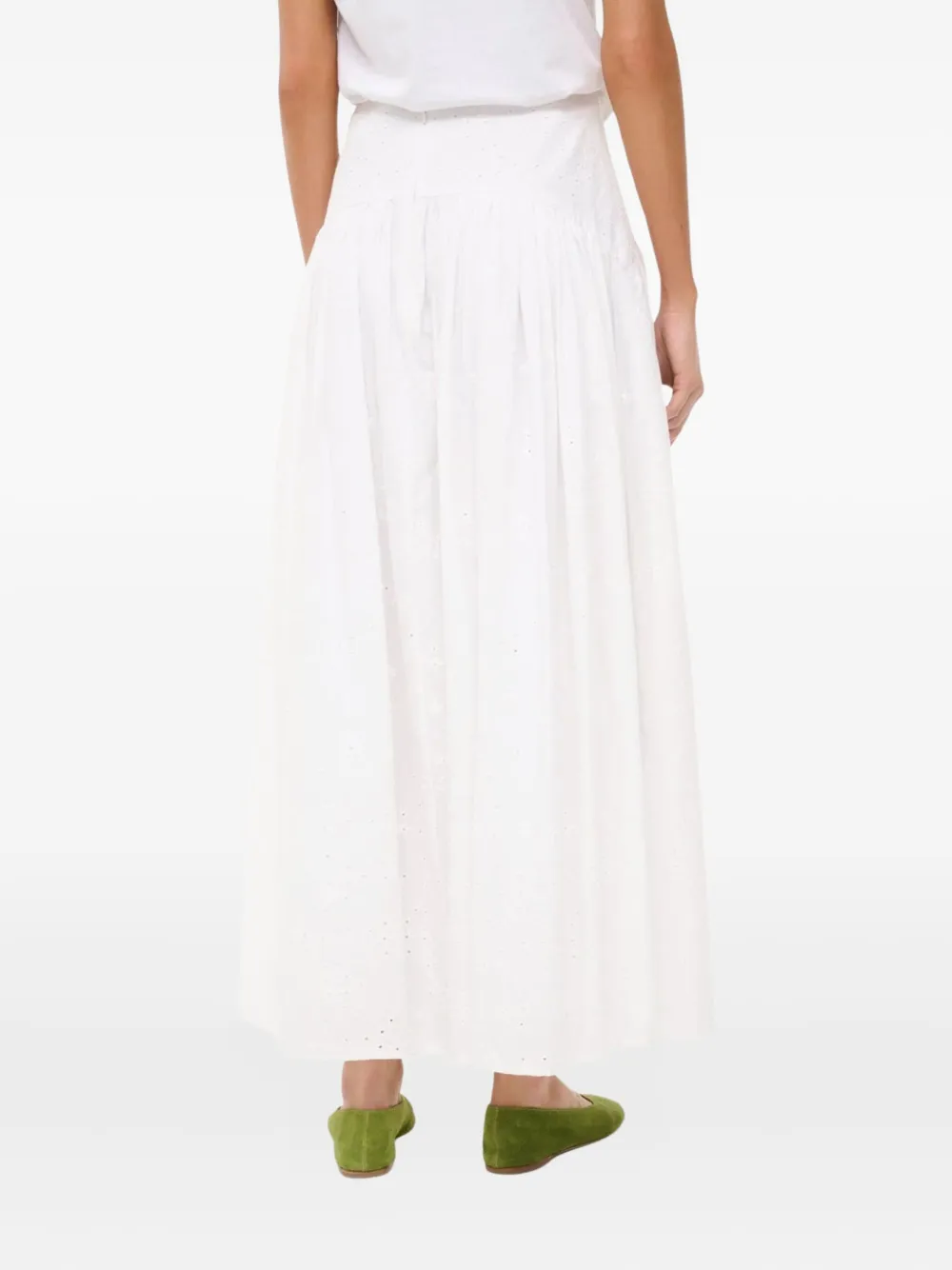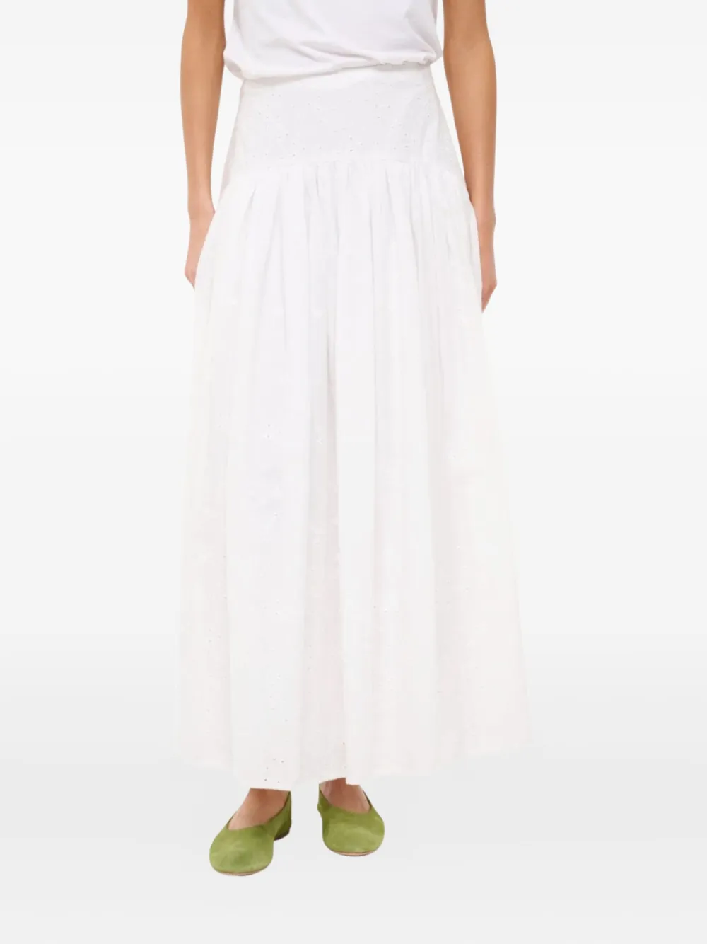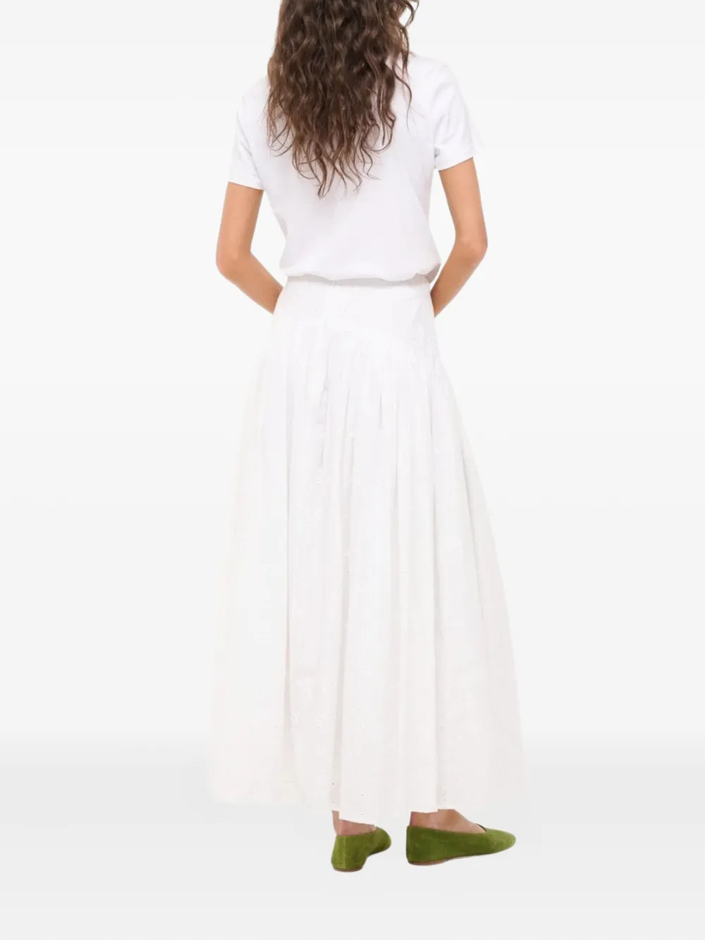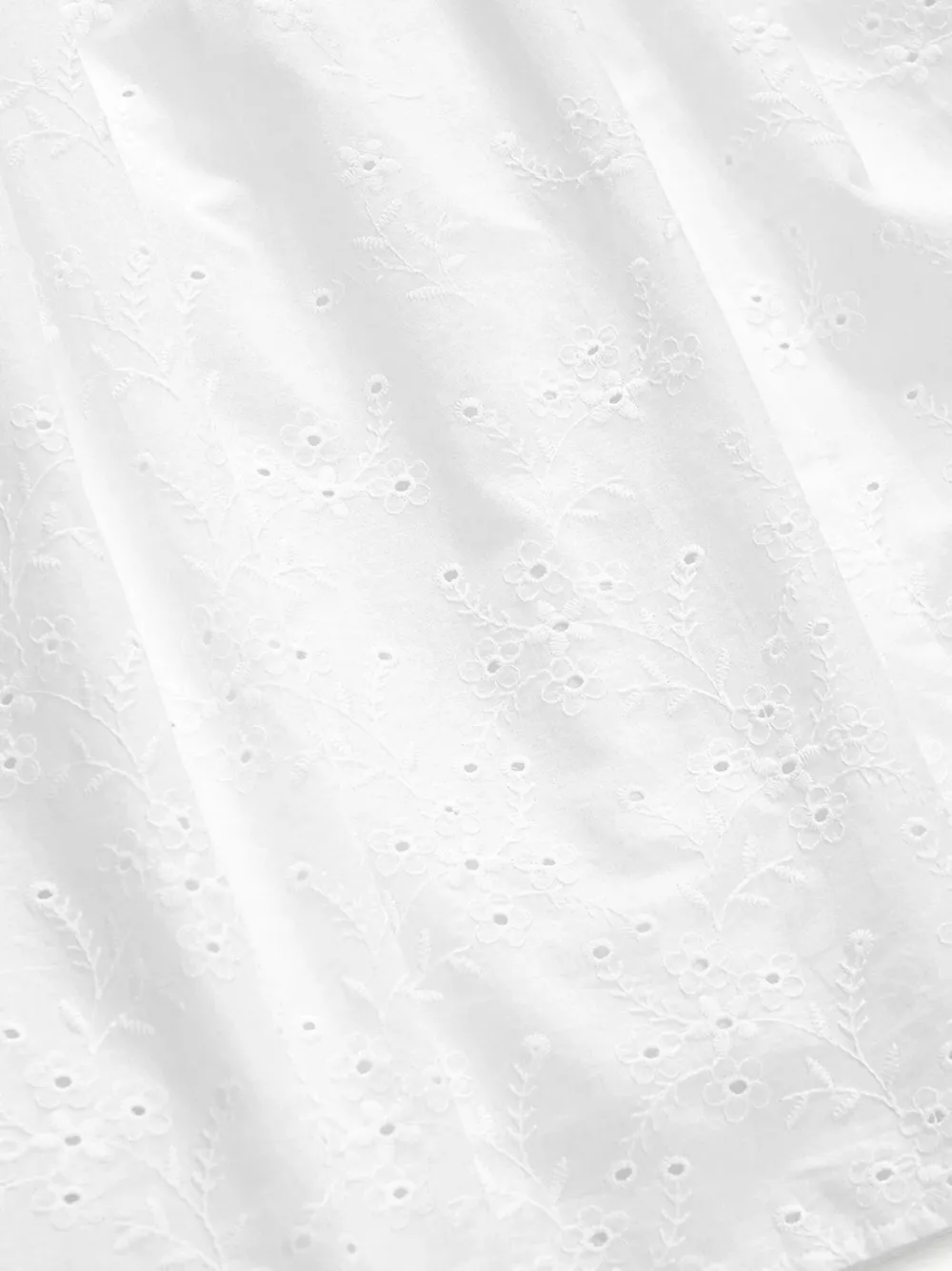 Белый хлопок вышивка в технике "ришелье" плиссированные детали собранная на резинке талия
