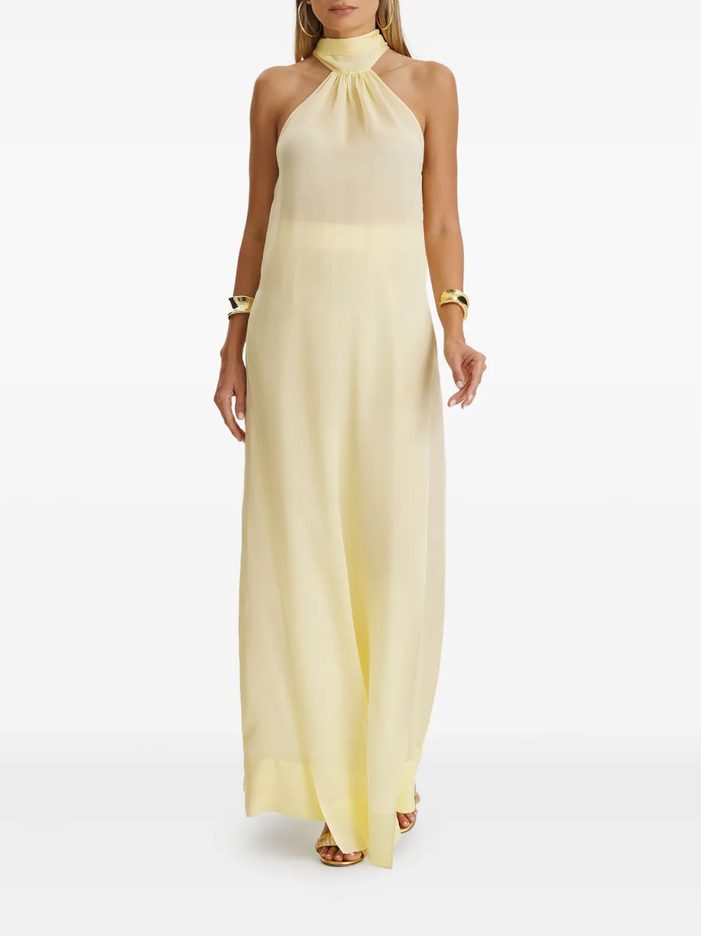 Бледно-желтый халтер деталь в виде банта без рукавов боковые разрезы