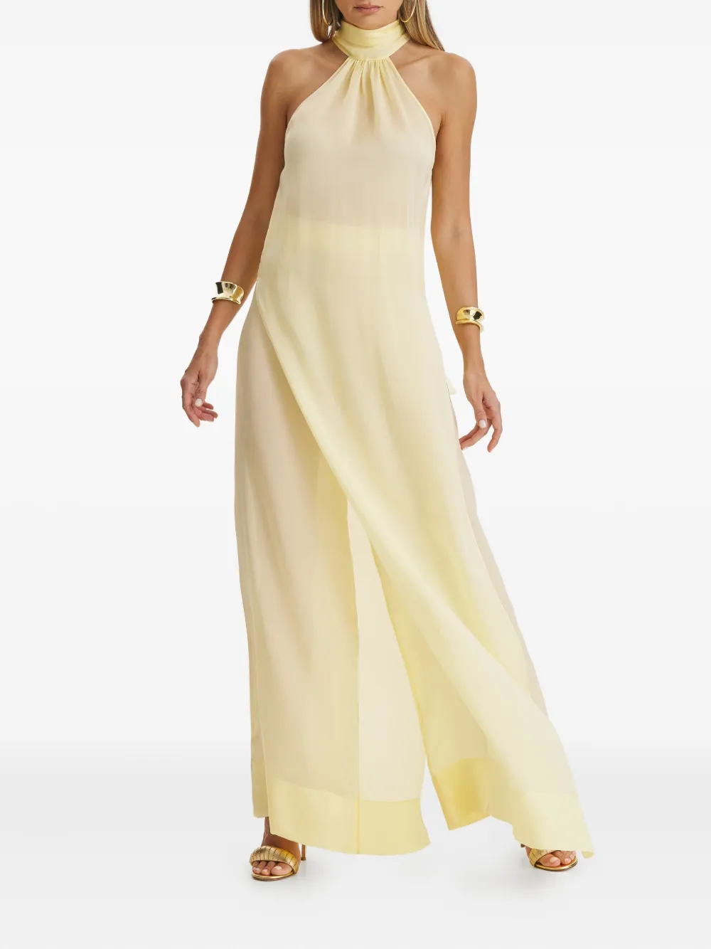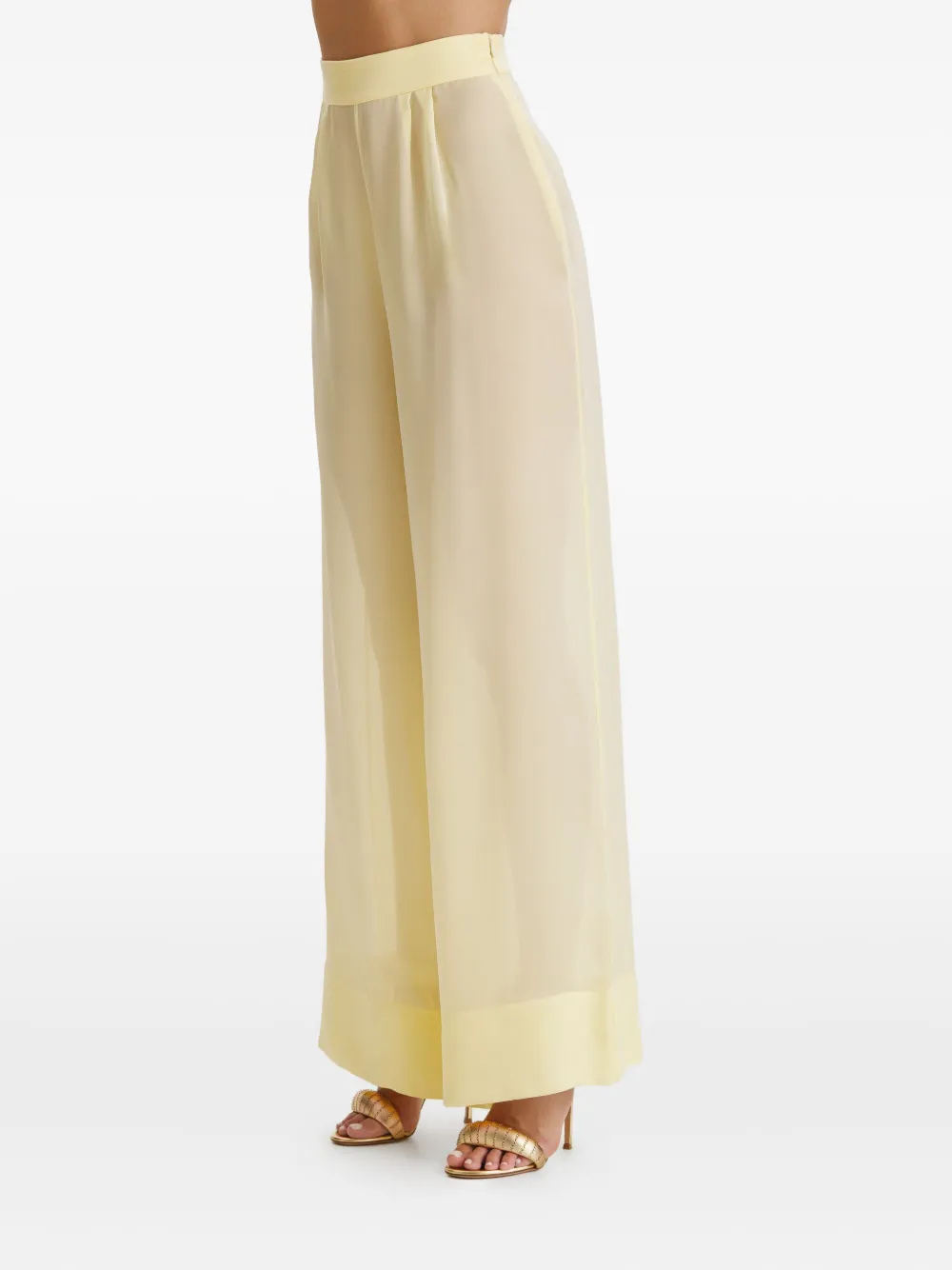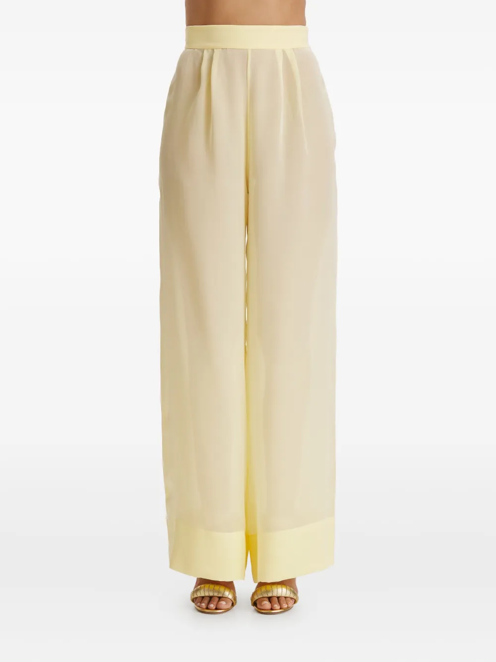 Бледно-желтый плиссированная передняя часть завышенная талия прямой подол полупрозрачная ткань